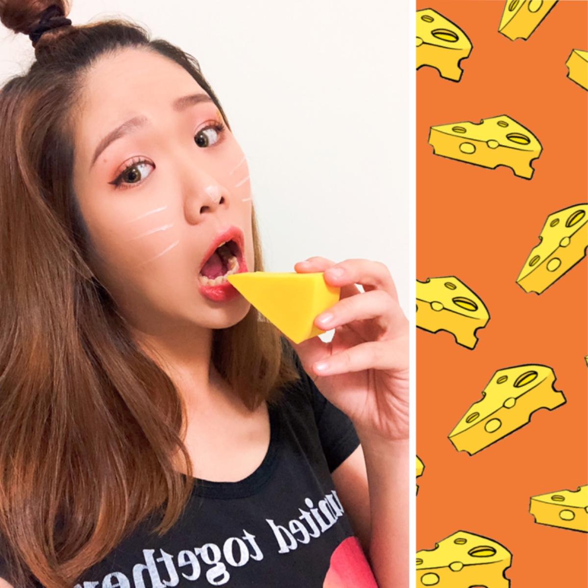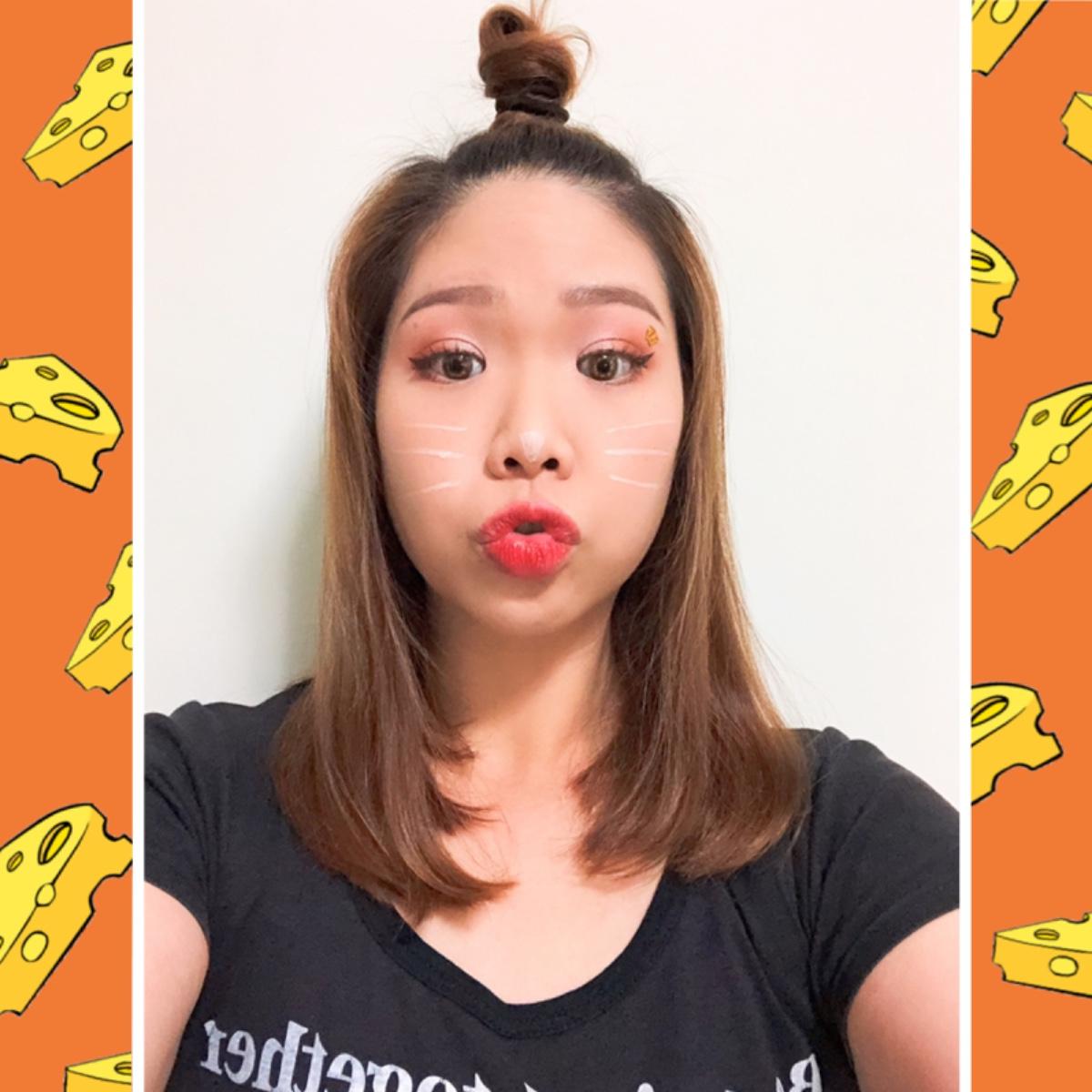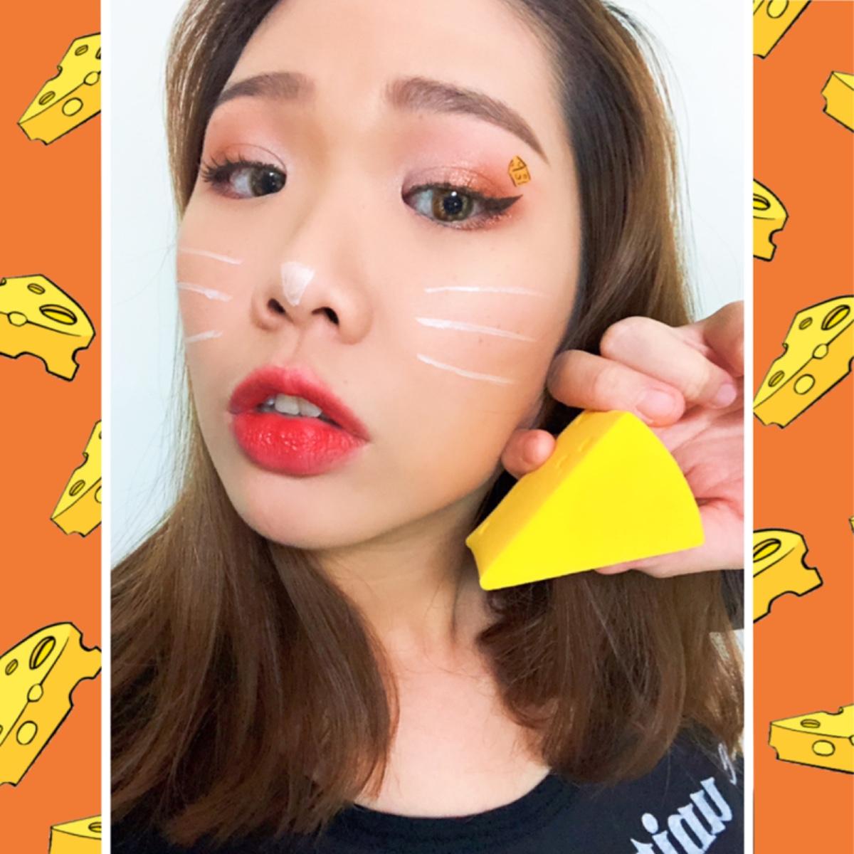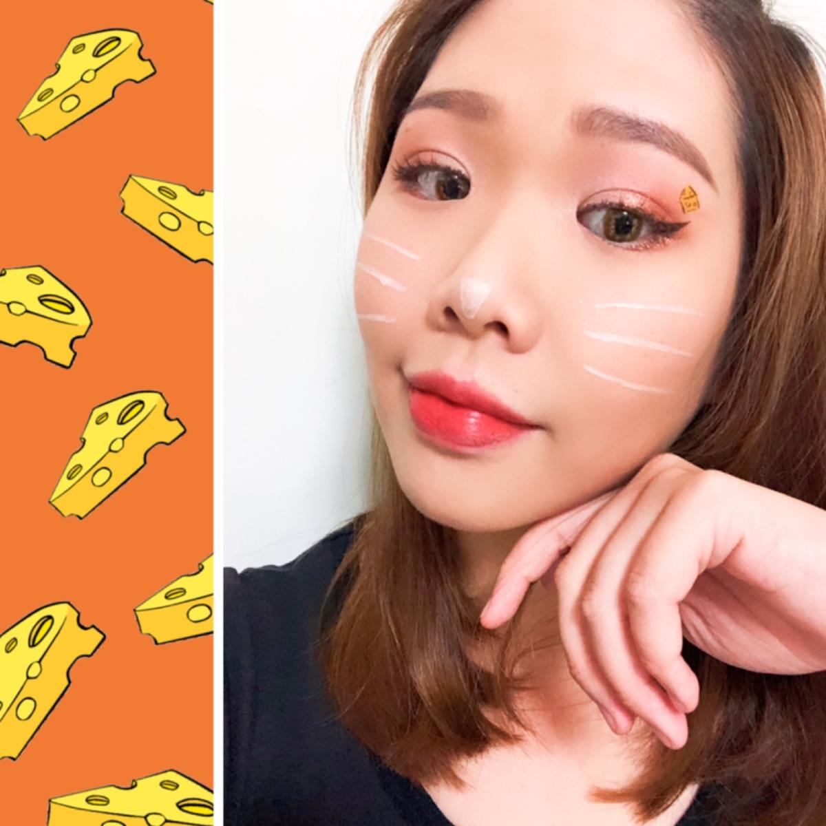 使用咖啡色眼線液,從眼尾直接拉出往上翹的眼線,讓眼睛圓又翹像貓眼一樣,同時可以斟酌在眉骨下方,畫上一個小起司。