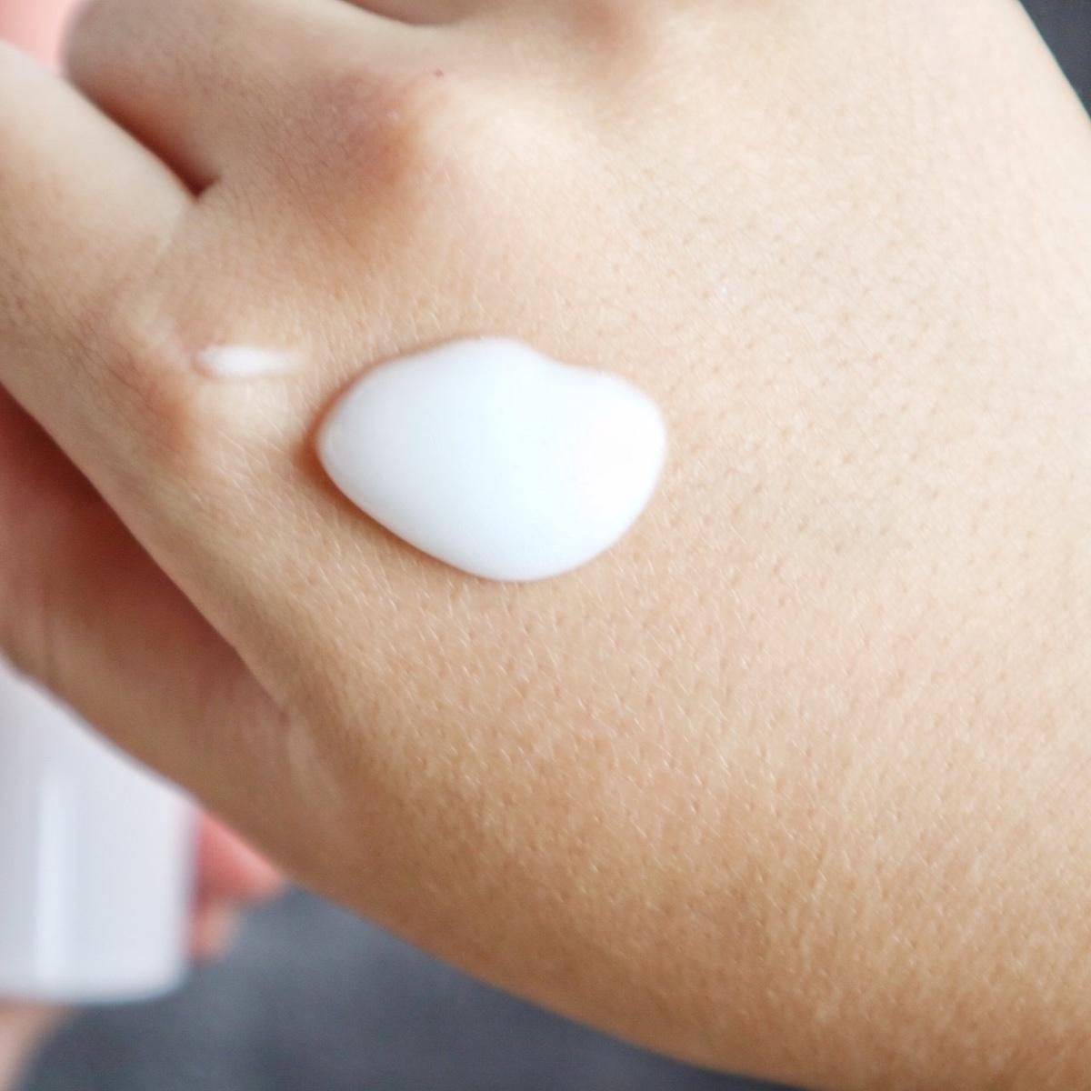 1️⃣剛擠出來是慕斯質地,抹開後像比較濃稠的化妝水,全臉用量大概是10元硬幣大小