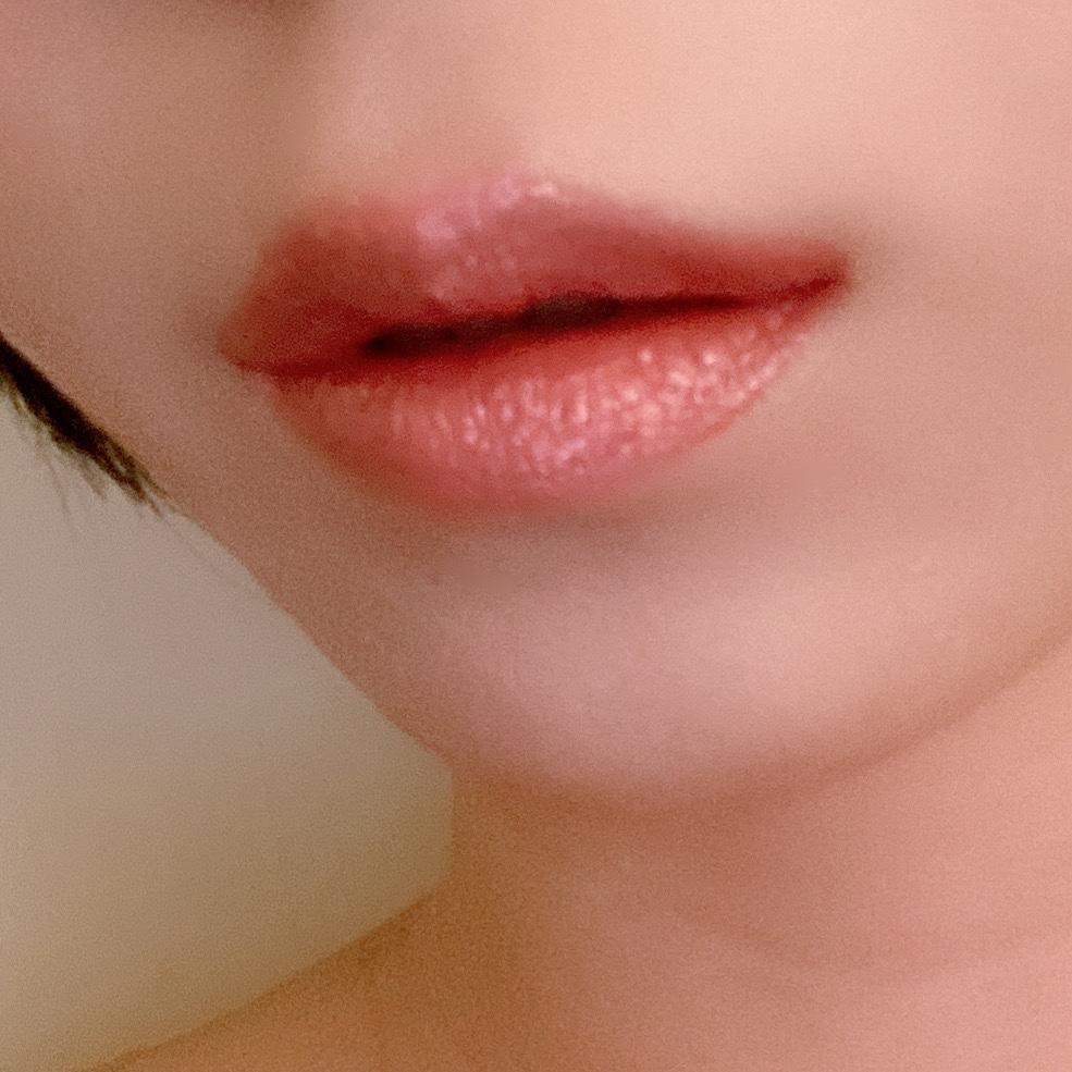 裡面亮粉十分精細均勻,我會做兩種擦法,一是全唇薄點塗勻,二是只點抹上唇打亮唇峰,神奇的香檳色唇蜜救回我的紫紅暗唇,變香檳閃閃嫩粉水潤唇!