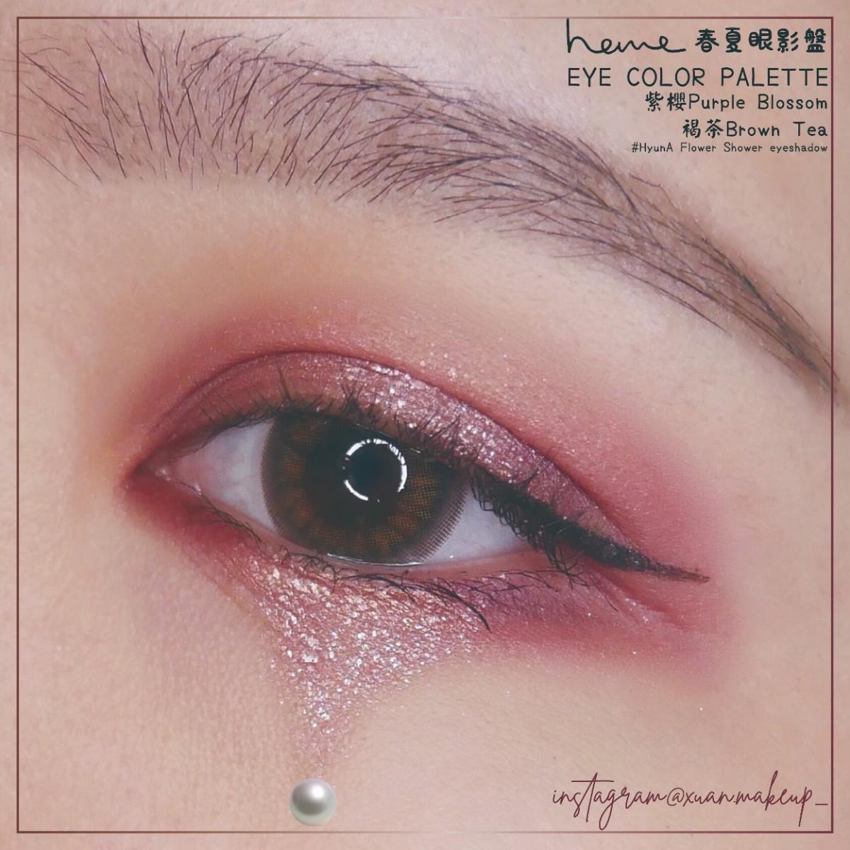 用heme紫櫻+褐茶稍稍改版的泫雅仿妝😍我參考很多flower shower那段時間的活動照宣傳照 之後把那些收集混合出來變成這篇眼淚妝💧