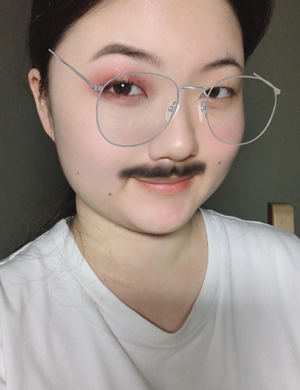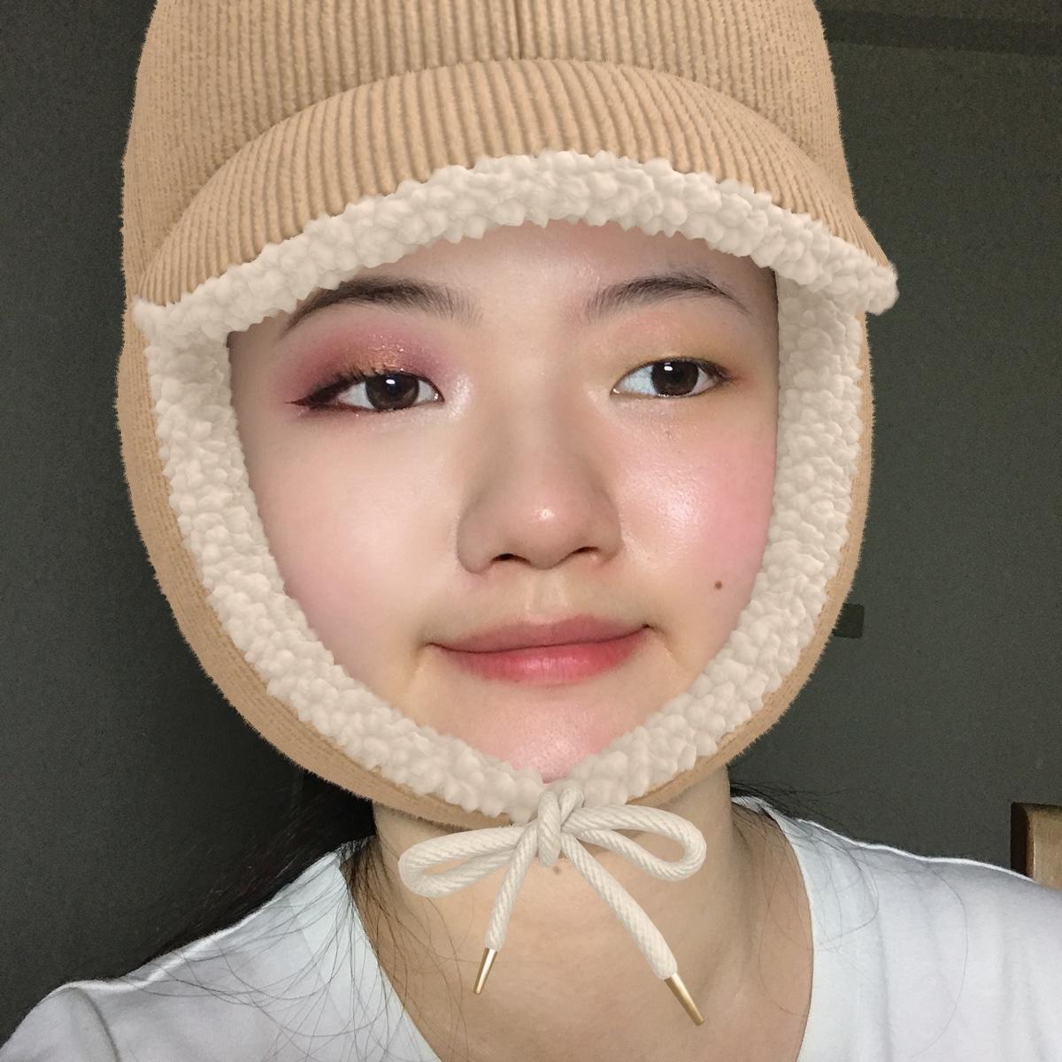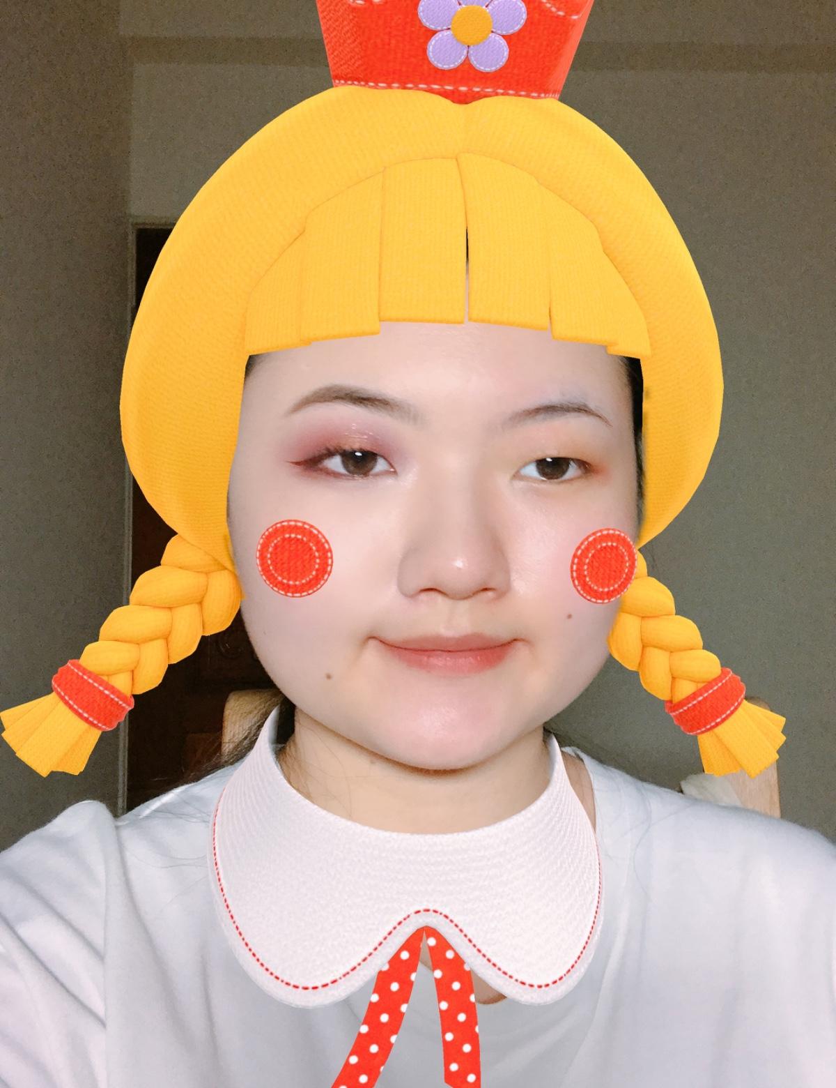 上眼影是紫色跟紅色輪流暈染