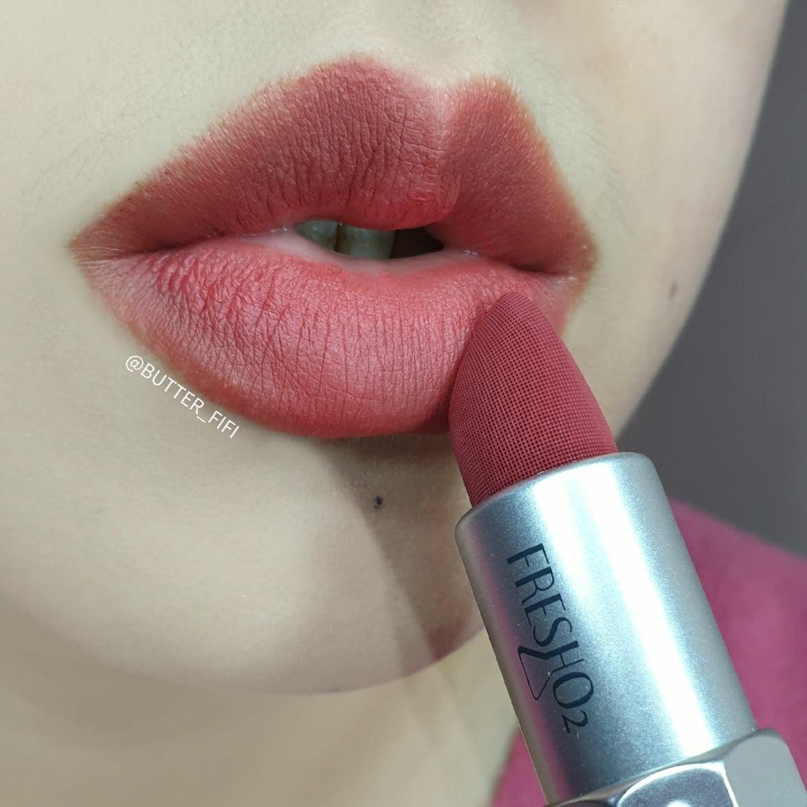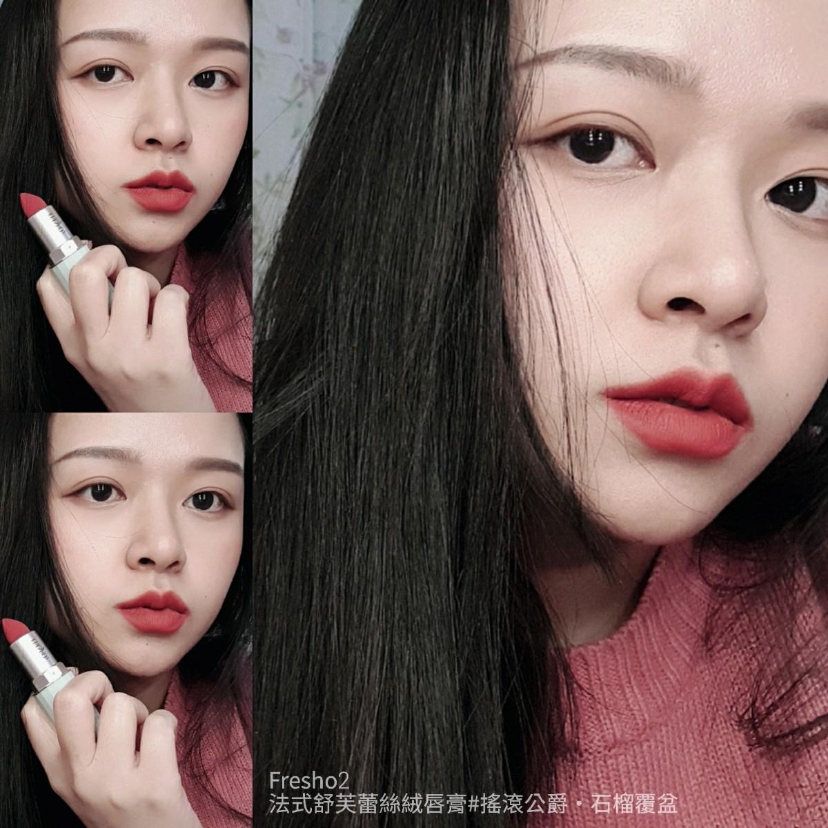 . 充滿魅力的玫瑰色🌹 調配莓果的可愛紅調, 很襯膚色又顯白, 薄擦就超好看, 涂飽和的話, 搭配粉紅或紅色系眼影, 更是女人味爆棚! 是男生看得懂, 女生也會愛的顏色😳😳😳 是照鏡子會驚呼好漂亮的顏色🤣 這次附上罕見自拍照請大家笑納🤪🤭哈哈~ . 更多介紹可以參考上一篇試色文唷😊 . lip: Fresho2 法式舒芙蕾絲絨唇膏 #搖滾公爵·石榴覆盆 #Fresho2#法式舒芙蕾絲絨唇膏 #搖滾公爵#石榴覆盆#MLBB