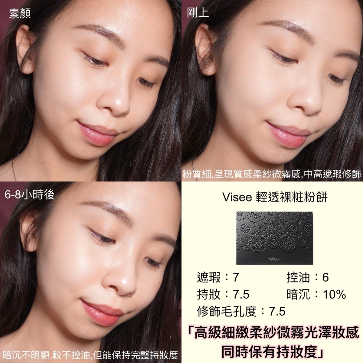 粉質細膩的清透霧面偽素顏感,遮瑕度及修飾毛孔程度普通,算是還保留肌膚原本紋理,但上臉很輕盈沒有厚重感,6-8h後暗沉稍明顯,控油及持妝度皆中等,所以較適合乾肌~混合肌,或是作為補妝也很適合!!!另外必須說我覺得粉撲比較不OK,如果替換其他粉撲,遮瑕度跟妝感會好更多!
