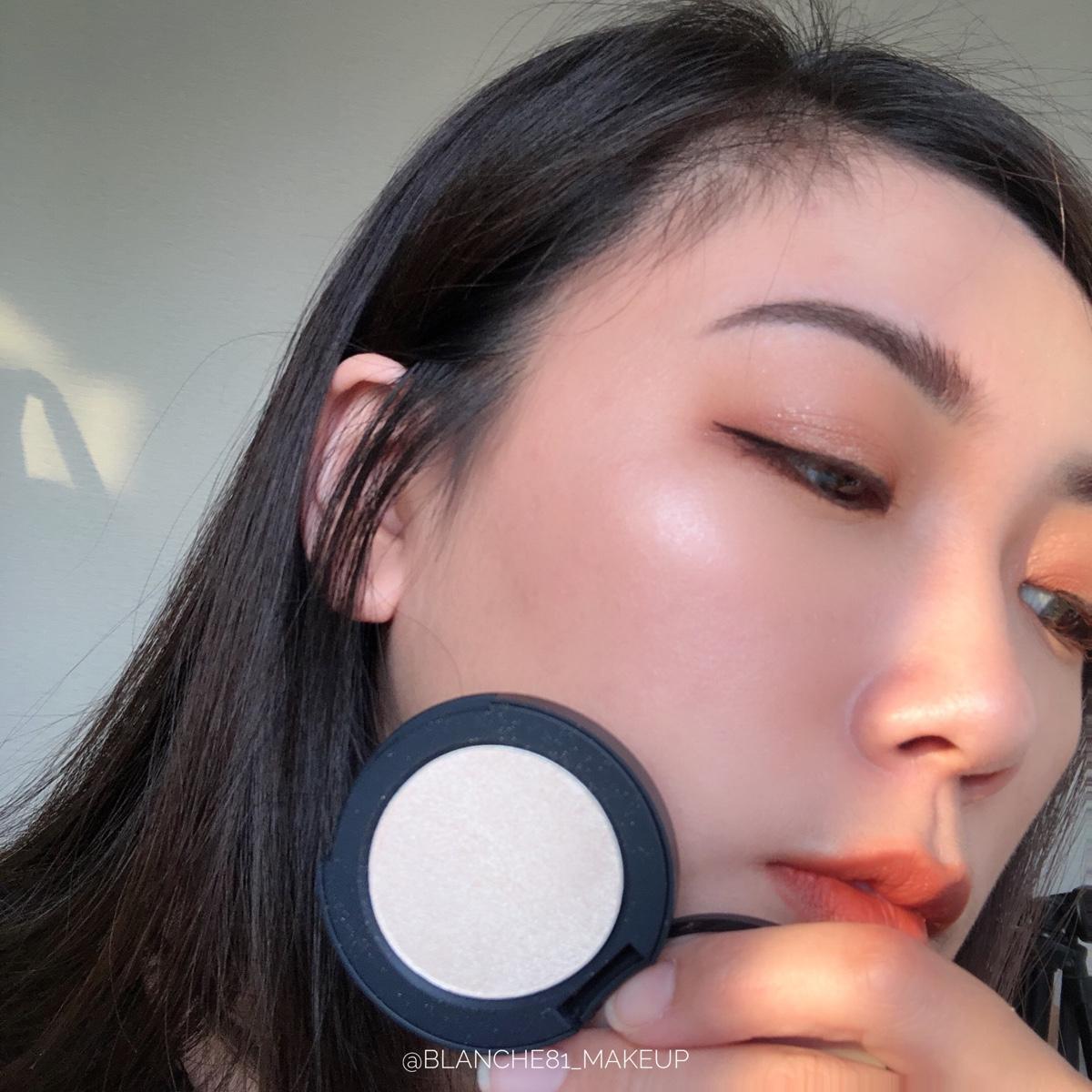 我覺得他們家的打亮粉質柔柔綿綿的,雖然他的顏色叫香檳金,不過我覺得他還是偏白一些,擦上臉上多少還是顯紋理