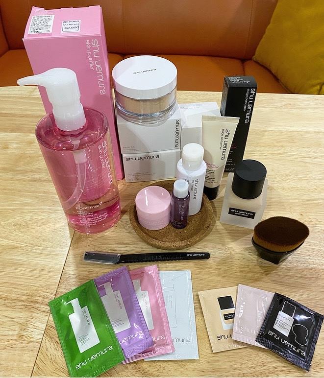 🌸櫻花萃釀淨透潔顏油 💧極保濕輕感防護乳SPF50 PA+++膚色 🌫輕薄型蜜粉 🤎無極限超時輕粉底764 #55零刷痕粉底刷 #每月會員修眉刀 📎附贈試用品 新·光燦新肌晶透露(清爽型) 覆盆子超淨白潔顏油 櫻花玫瑰保濕面膜