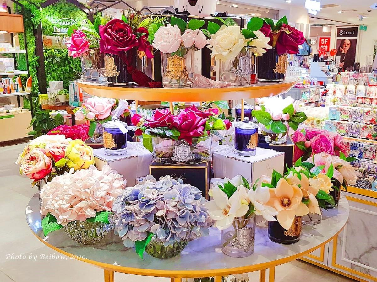 終於到了欣賞美花的時間,Bloom櫃上擺了滿滿的仿真香氛花,畫面好美好美,