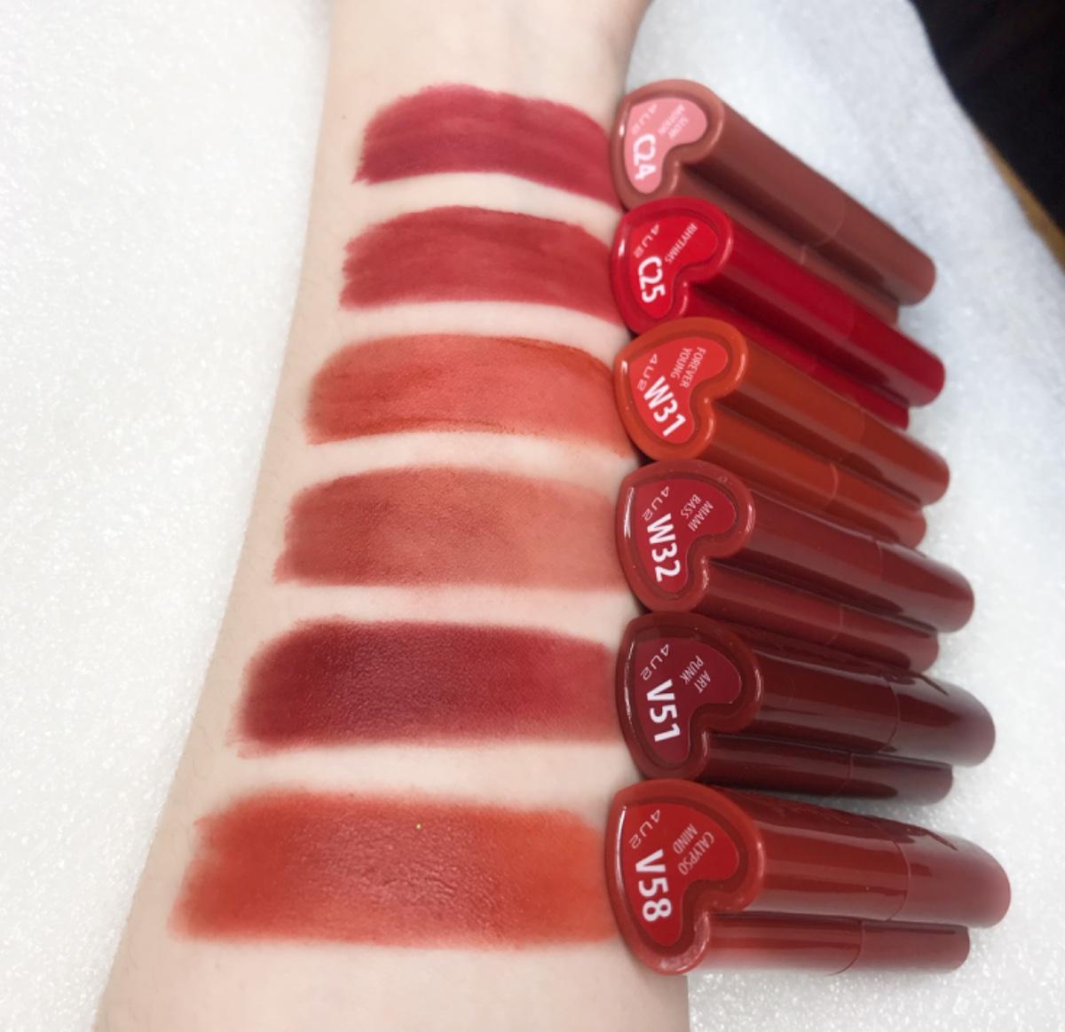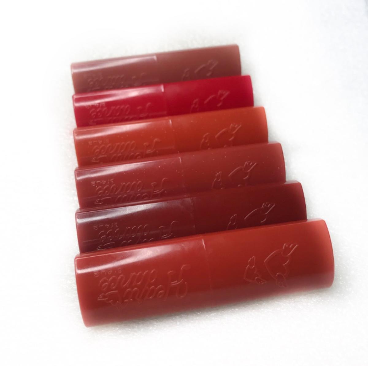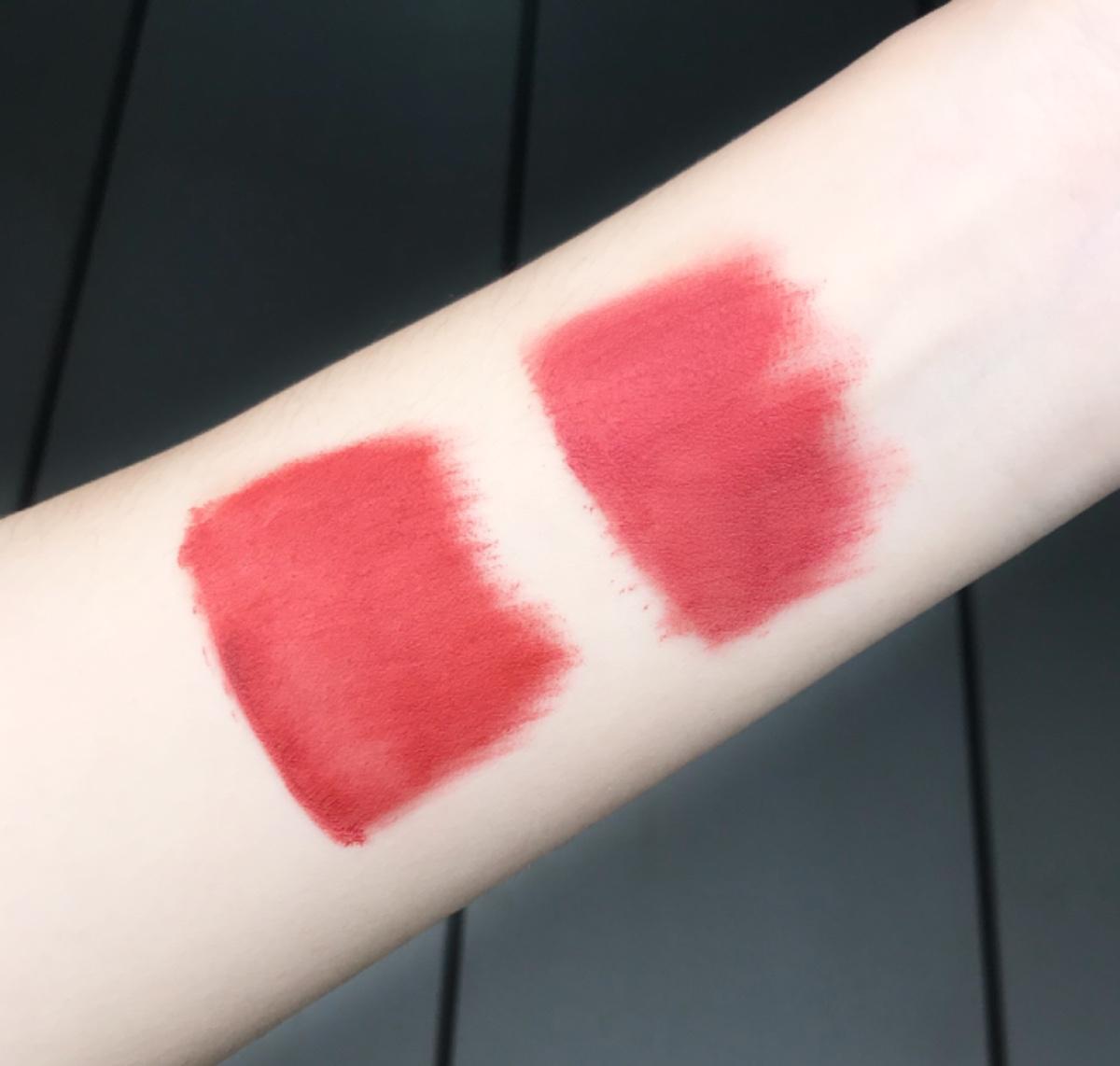 霧面絲絨不會乾、但是是這三個系列中比較會顯示唇紋的、顏色也相對持久力好