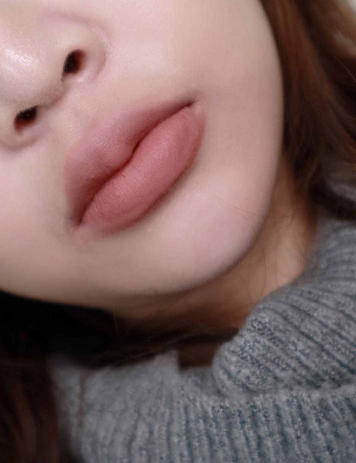 這個顏色比較裸。但上皮膚比較白的我沒有任何病氣感,歐美裸粉,還可以營造豐唇感