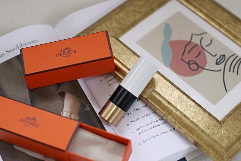 今年生日收到朋友們千辛萬苦買到的HERMES唇膏,台灣上市當天似乎就已經賣完,這包裝是蠻精美的,橘色的品牌經典小盒子,還有跟包包一樣的小袋子(如果也印有品牌LOGO的話更好),這系列除了三色限定色之外,其他基本色有24色(12色霧面/12色是緞光質地)。