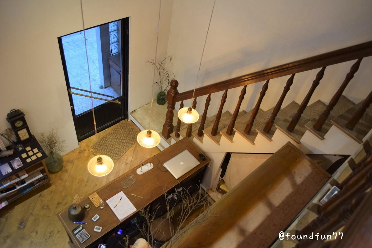 從鏡面反射裡可以看到招牌拱門與木梯,