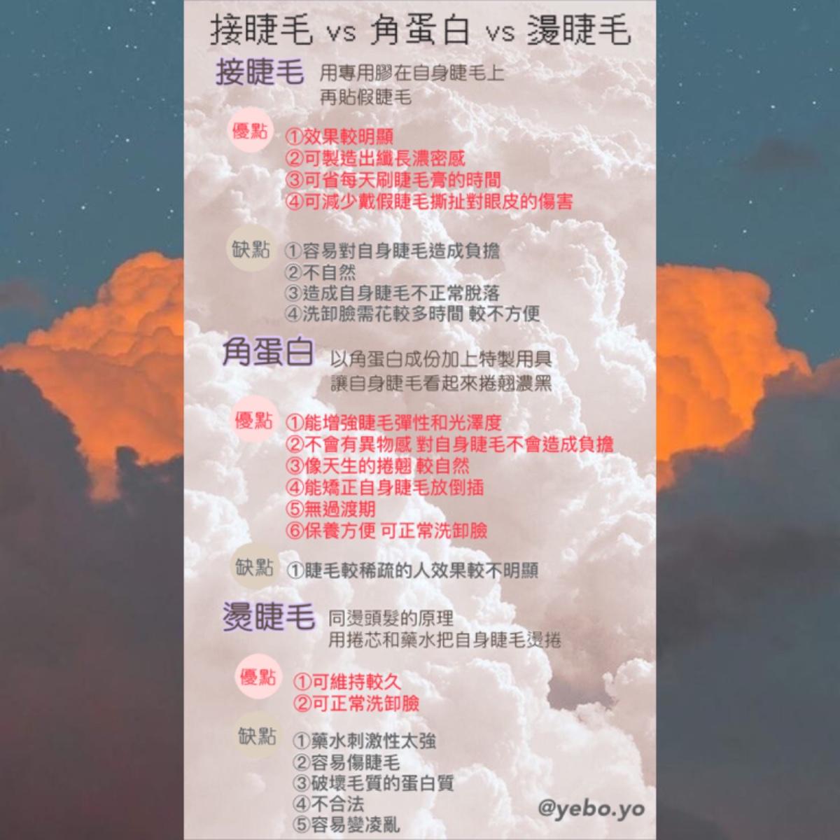 有人知道接睫毛、角蛋白、燙睫毛的差別嗎?