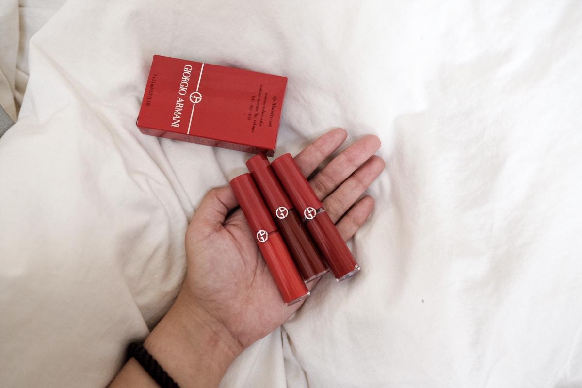 GA的精萃真的非常好用,3隻都是絲絨質地,剛上上去的時候是比較光澤感的,時間久或是用衛生紙稍微按一下之後就會呈現很美的霧面感真的非常漂亮!而且很飽和持久,擦上去感覺有豐唇的作用🤣而且超級不顯唇紋!