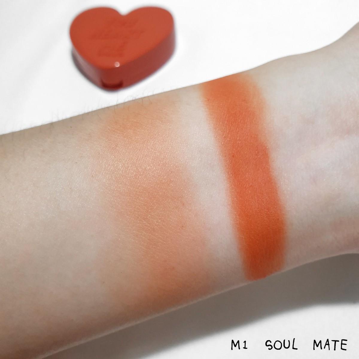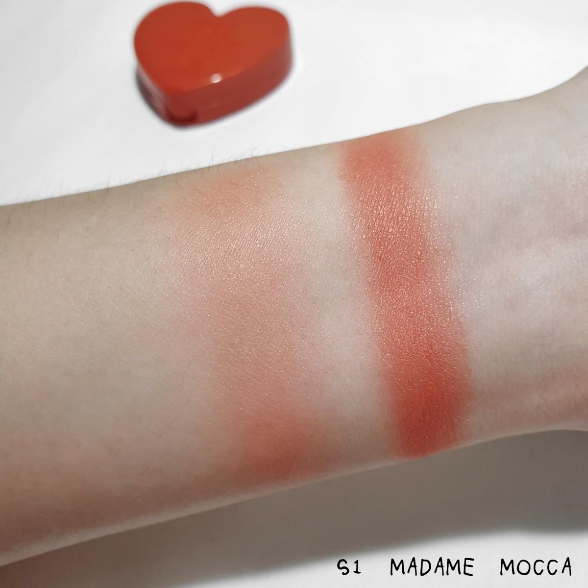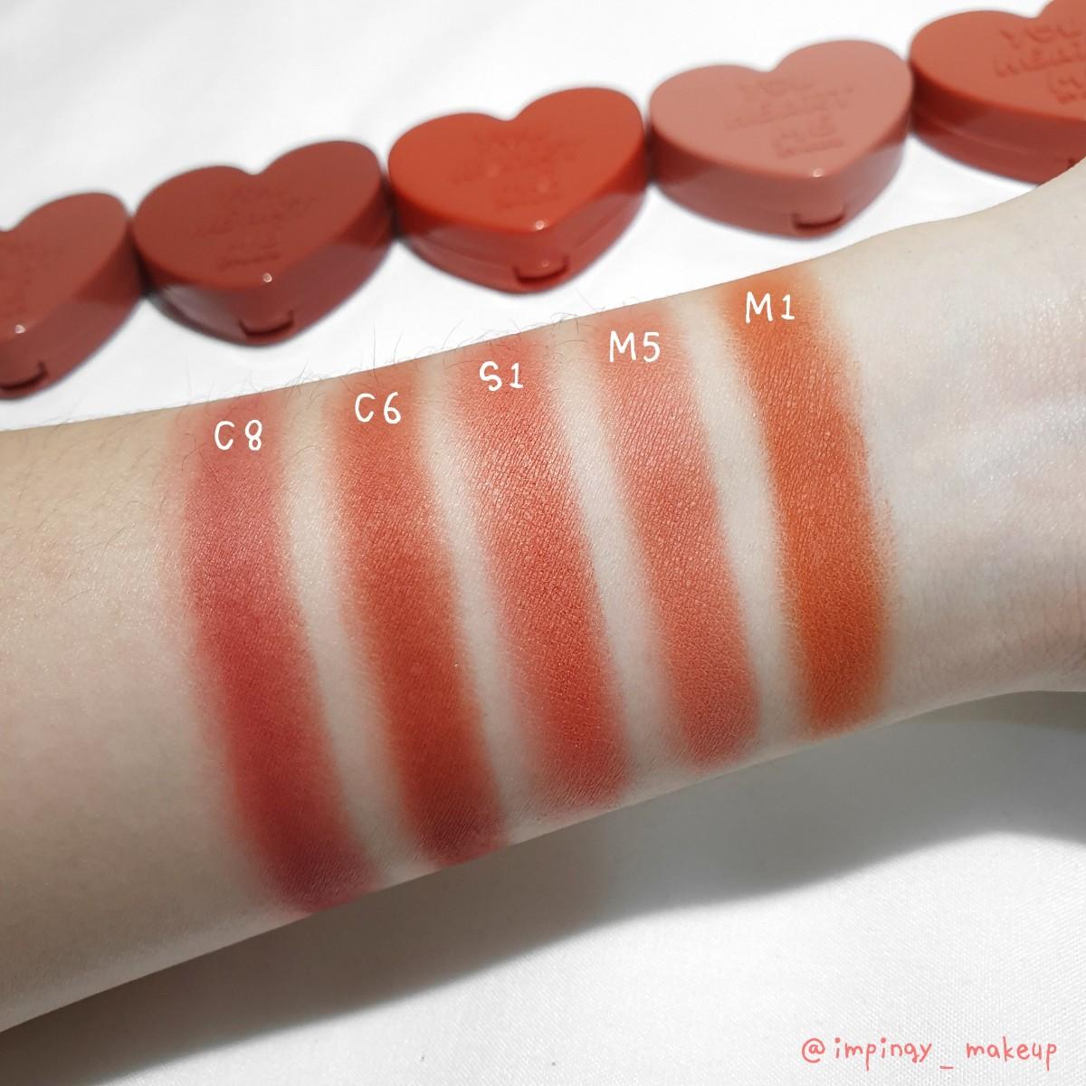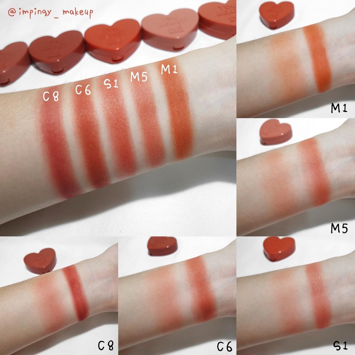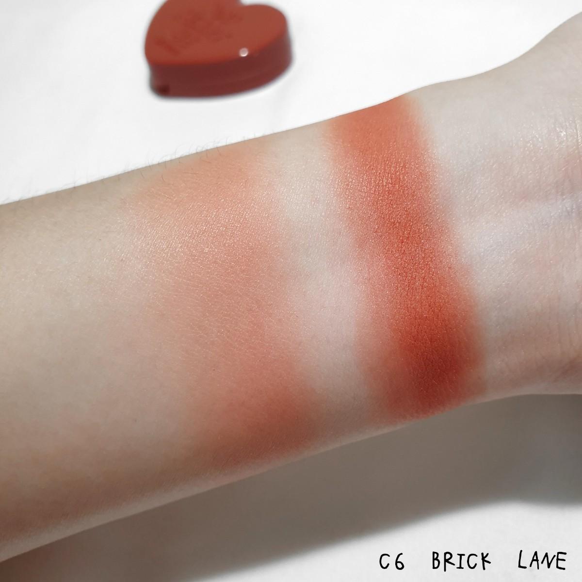 我也不知道要叫他紅棕色還是爛番茄色,總之很顯白就是了,而且因為他是霜狀所以拍開再掃個蜜粉非常自然,透出來的紅潤感!推。
