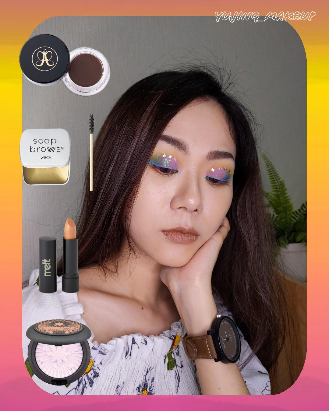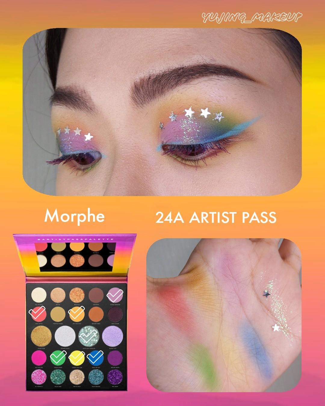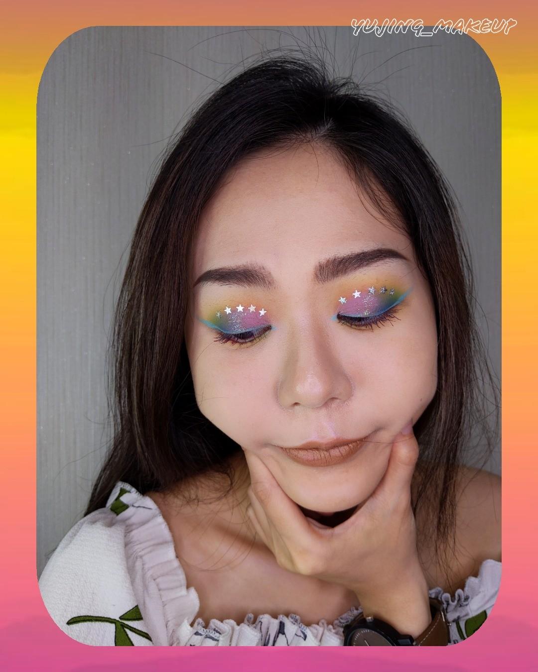 ✓glitter中的星星亮片,我是沾假睫毛膠一顆一顆黏的,綠偏光亮粉疊眼中