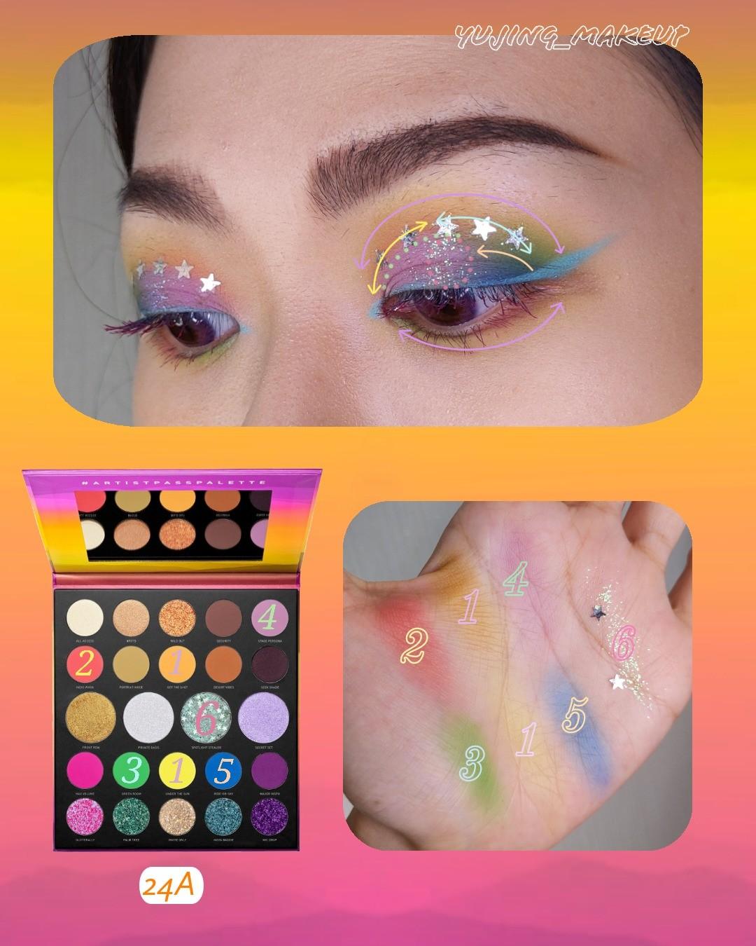 這盤我從收到就還蠻喜歡的,霧面好暈可以疊加,glitter每顆都超級美😍是賣點(ig有手部試色影片,亮片會更清楚),只不過有些顏色因為我們黃種人膚色的關係上眼很不明顯,怎麼疊都差不多那樣(右上薰衣草紫、下方淺黃霧面這兩顆,建議切cut crease用按壓的),對的起售價,沒有什麼缺點可言👏🏻就是卸亮片的時候很想死而已😂