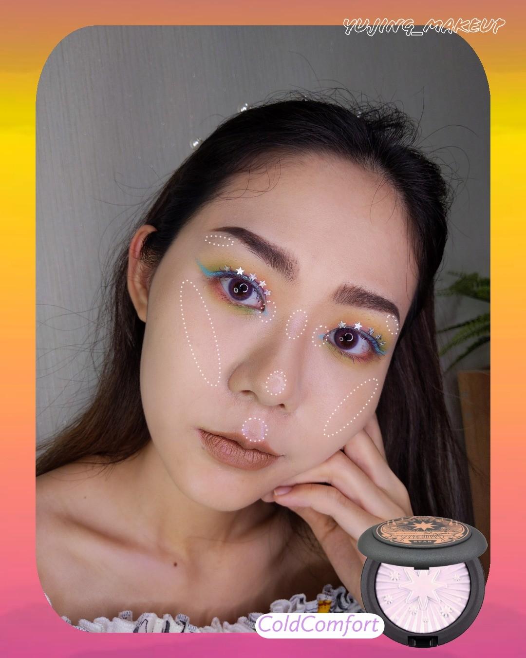 @maccosmetics @ponysmakeup 聯名偏光打亮#ColdComfort ,暗部沒底色反光粉紫色,但是偏光閃度很低偏自然,覺得的可以上在眼下三角當打澎蘋果肌,純粹就是腦粉硬收,閃度對我來講是不夠的。