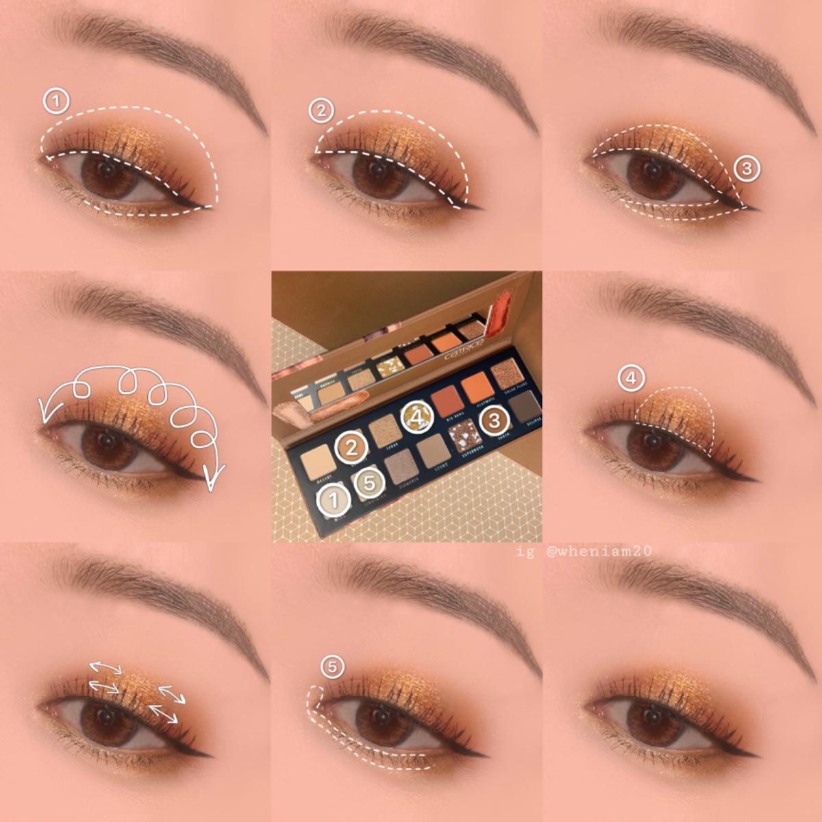 ③ 眼皮前後段使用棕色加深 帶到下眼影