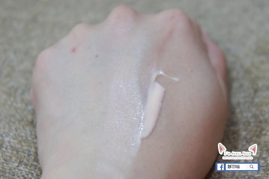 當作妝前飾底乳來使用,在臉上這種超多曲線的區域也都很好推開,它是含有美容液成分的防曬隔離乳,拿來當作為妝前的飾底乳,感覺就能省去妝前上保養乳液的步驟,還能防曬同時保養,根本一舉兩得