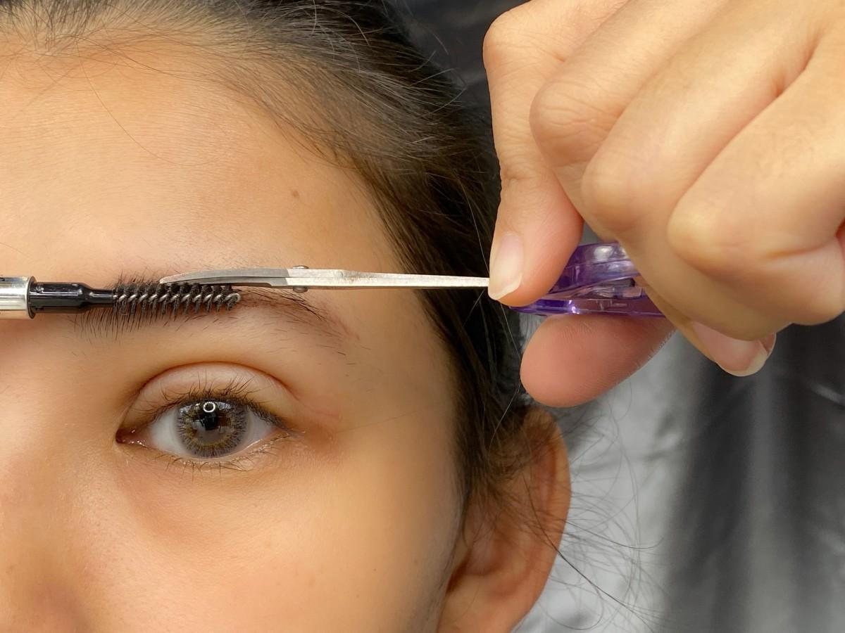 3.利用眉刷網上刷把過長超出眉毛的地方用剪刀修剪。