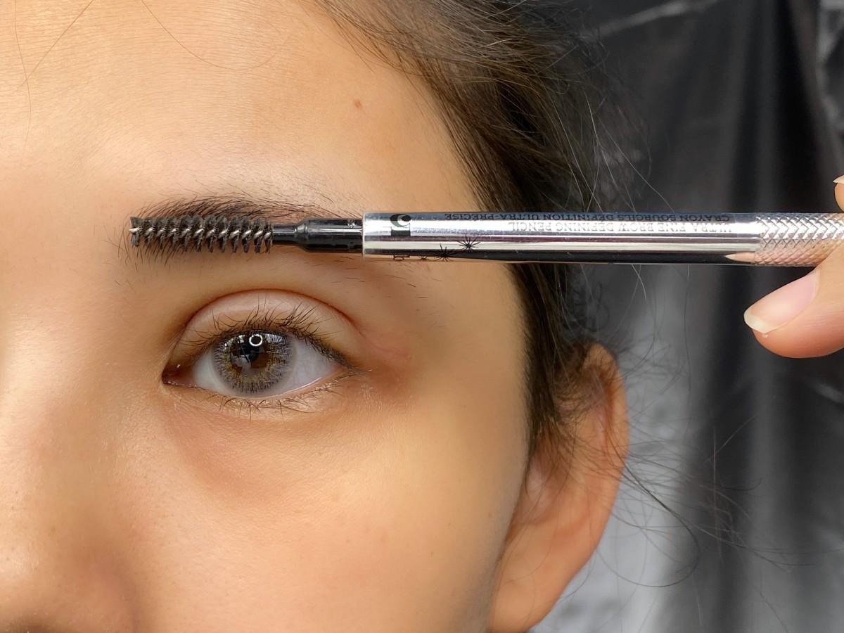 2.使用眉刷先整理好毛流,檢查需要修剪過長的眉毛。
