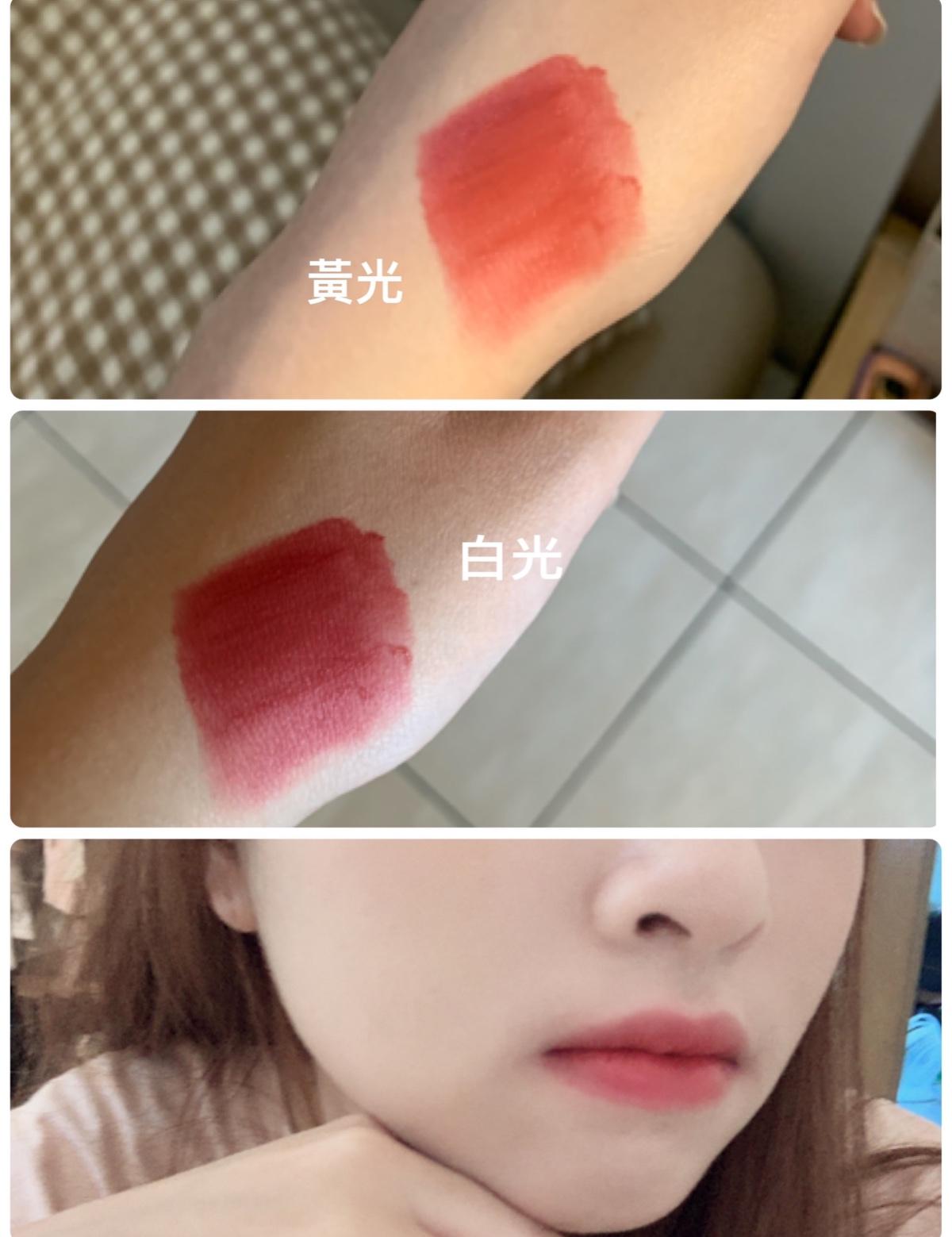 顏色超美,真的超好看💓💓我買的色號看起來是🥀紅棕的玫瑰色,沒有什麼味道!對我這種不喜歡唇釉有一些香味的人真的很適合,*質地介於絲絨與水潤之間,不顯唇紋不起皮!