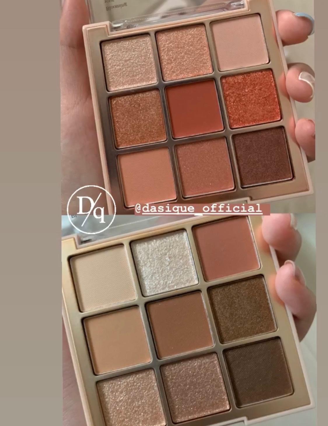 之前看到Dasique很多日本人分享,顏色配色超級美,我就直接兩盤顏色都下單了,結果連包裝也美到爆炸😭顏色很百搭,亮片色很細緻,不太會掉,霧面色也不會飛粉,是我最近最愛的眼影盤之一!但有點偏貴,大概是3ce九宮格眼影盤的價格。