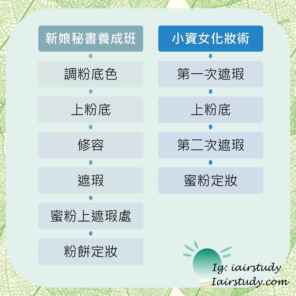 個人會建議已有化妝基礎者,直接選擇新娘秘書課程!雖然多了髮型的部分,但也能替自己或家人朋友編出不錯的髮型,是很值得的課程。