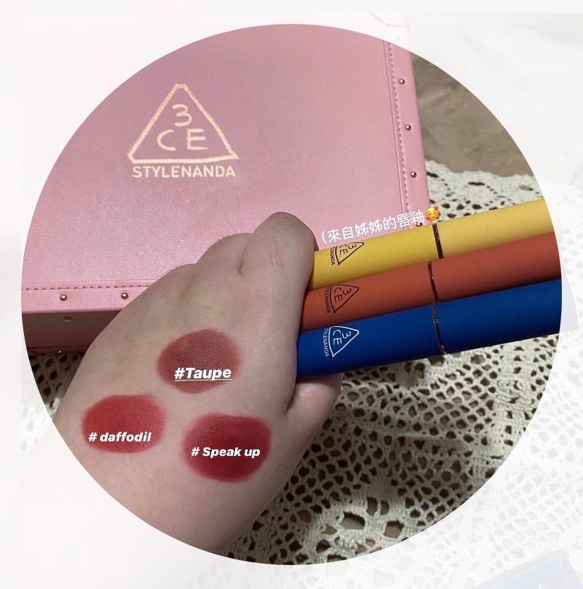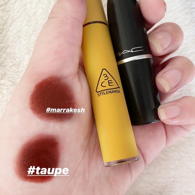 兩個顏色都是紅棕色,但3CE的taupe更偏紅一點,marrakesh更棕一點,大家可以參考一下~