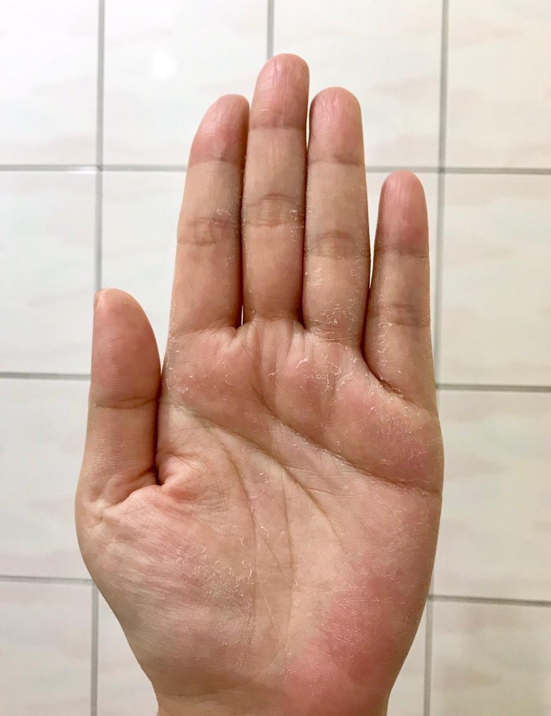 連手掌心、指縫間都脫皮