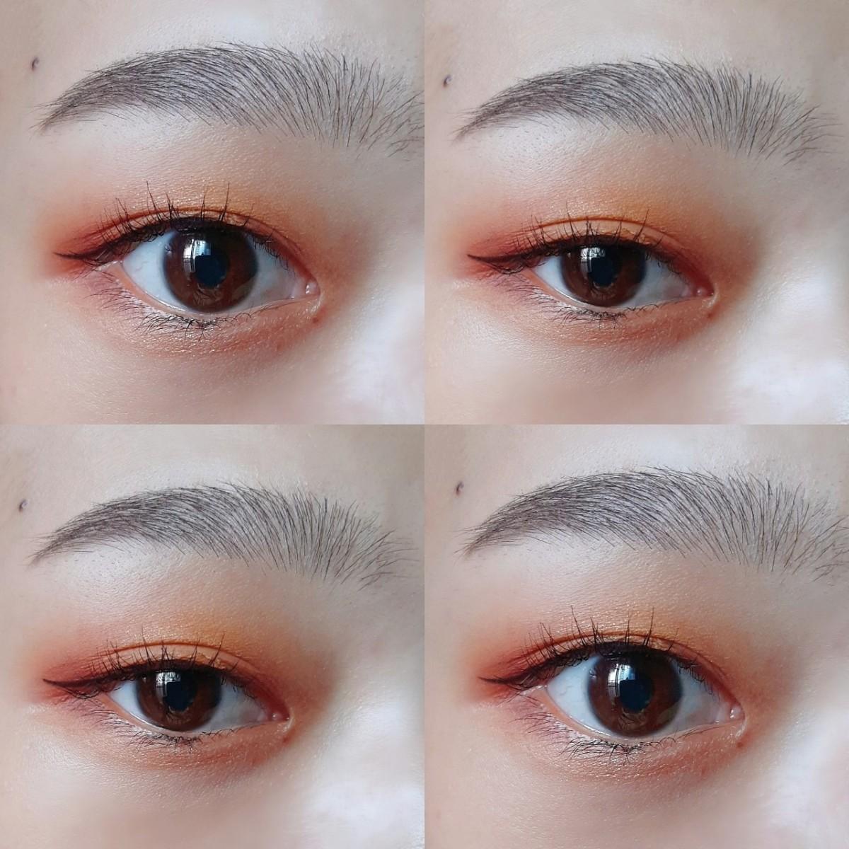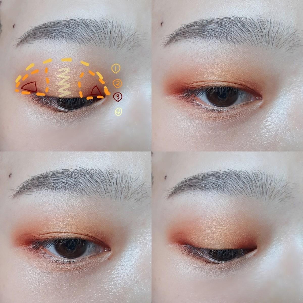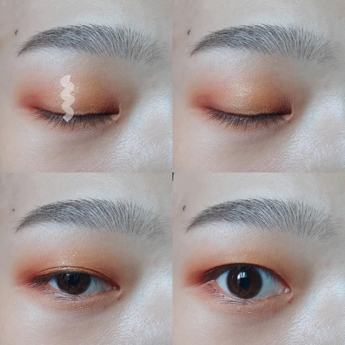 補充一下,下眼影我是用ETUDE HOUSE楓葉盤的棕橘色輕輕帶過整個,再加重一點在眼頭部分,接著用Missha的珠光黃點亮在中間