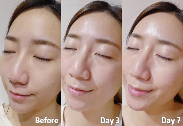 長期用下來全臉的光澤度跟水潤度有提升,臉上的極光圈馬上跑出來~~如果不熬夜的話我相信效果會更好!