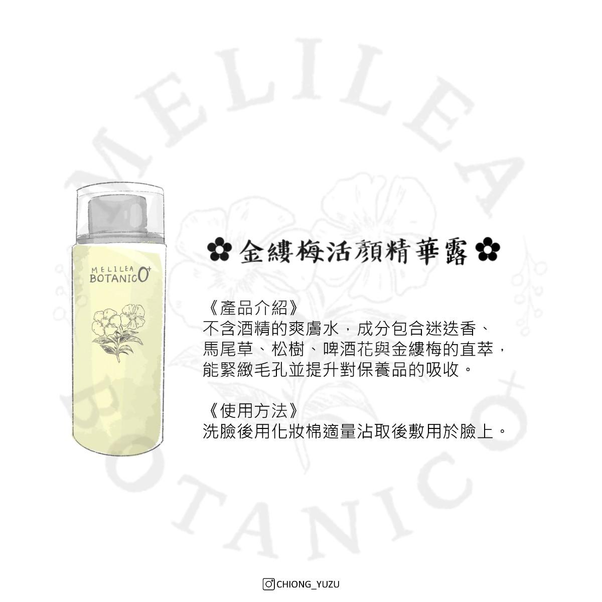 而且我對於酒精雖然不至於到過敏但是因為台灣有一半以上的人患有酒精不耐症,缺乏分解酒精毒性的酵素,所以關於酒精的部分我都會特別注意。✿金縷梅活顏精華露✿不含有酒精成分,特別適合台灣人使用喔!