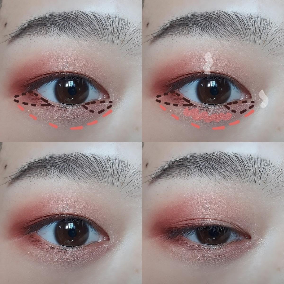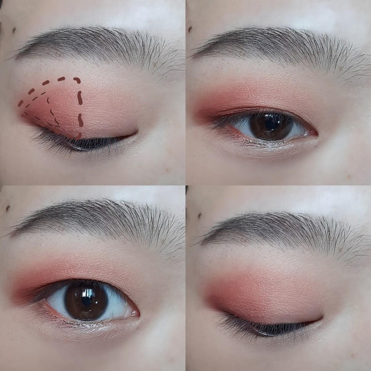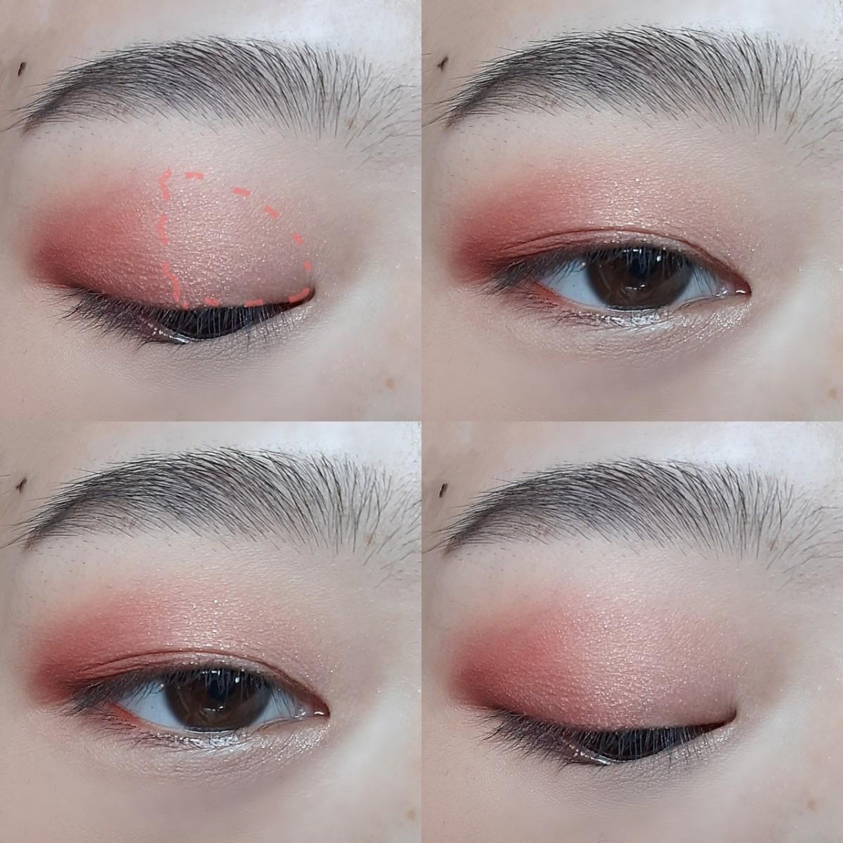 用橘紅作主色 上在眼皮後二分之一 (這顆橘紅是帶有珠光的)
