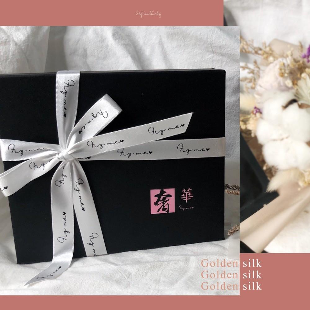 這次體驗到的產品是奢華黃金蠶絲修護面膜,包裝非常精緻,加厚的黑盒子以及白色緞帶裝飾