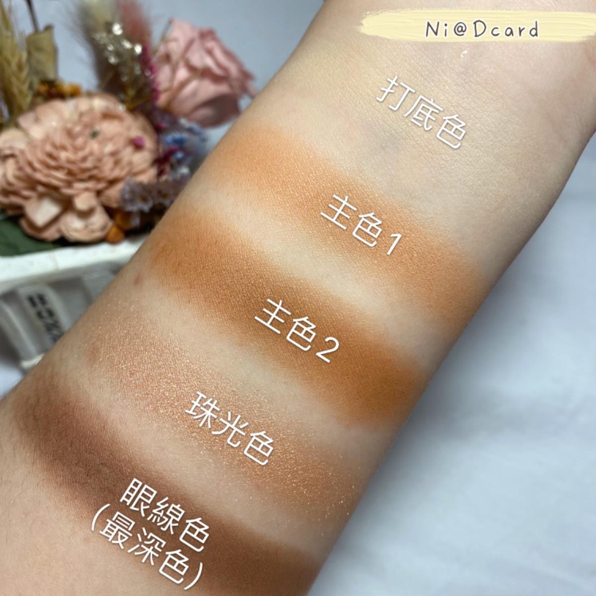 米白打底色、主色(一淺一深或是只挑一個也可以)、珠光色、眼線色(最深色)