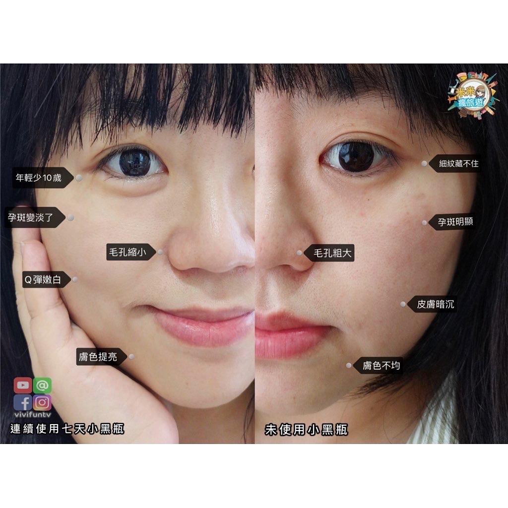 🥳在全台安心旅遊全民瘋國旅,大家都抓著機會到處遊玩,瘋狂打卡把網美照拍好拍滿,當然我也不缺席,而且我還帶著3寶們一起同樂,爬山健行,海邊踏浪玩得不亦樂乎,有時候太累晚上隨便洗洗臉就暈倒了,肌膚漸漸鬆弛暗沉,膚色不均,使用小黑瓶-蘭蒄超未來肌因賦活露,淡淡乳白色的精華液,十分清爽吸收快,按壓式滴管建議直接滴在臉上,免得噴飛浪費了,每天早晚各一次連續7天半臉測試,左右臉的膚質差超多,超強修護抗老緊緻一次到位,讓我肌膚全面升級,變得超嫩、超亮、超Q彈,重點是毛孔更緊緻,彷彿年輕10歲,哈哈哈不誇張,拍照都像自帶補光燈,肌膚直接過曝!