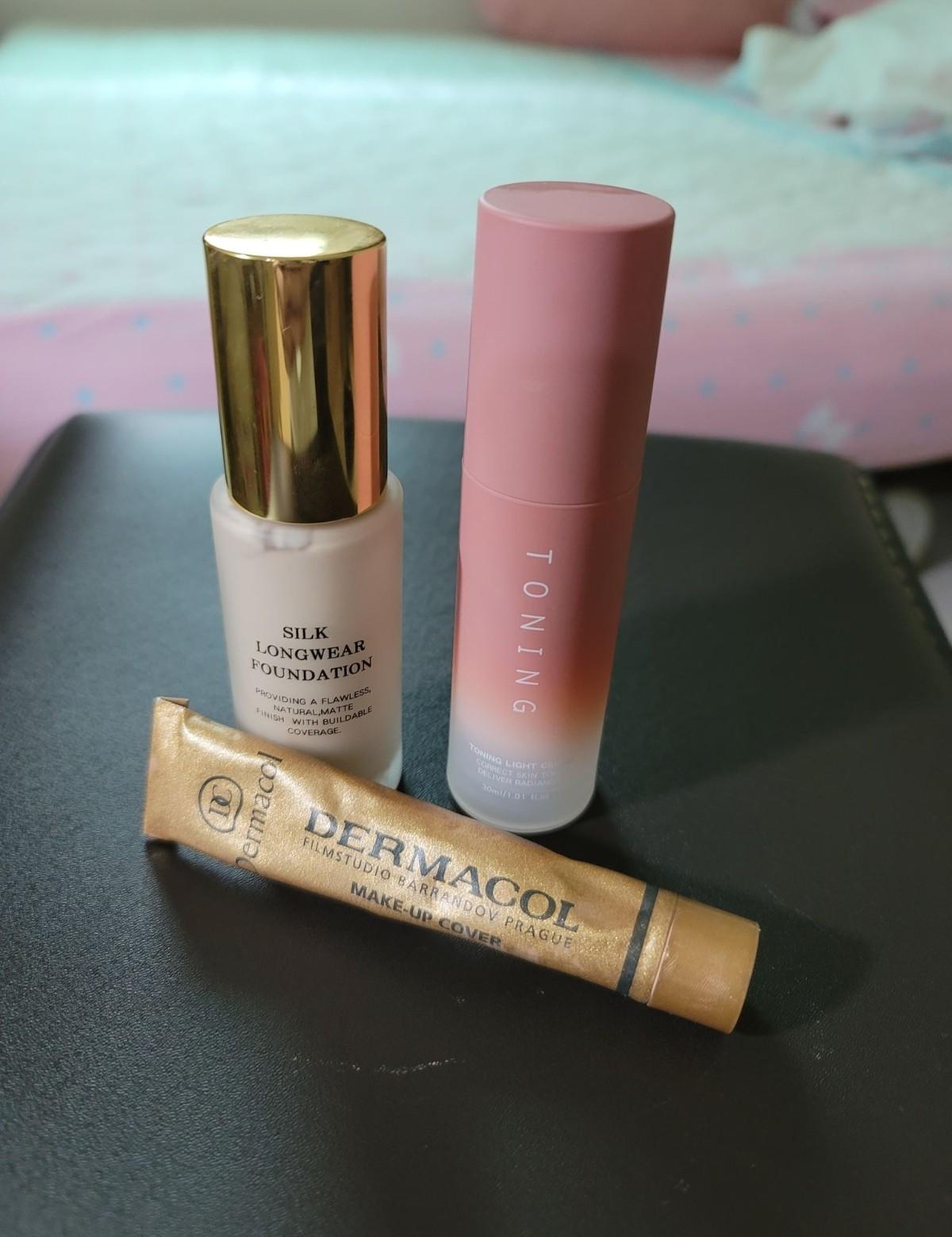 用了凱夢的粉底液和素顏霜混合