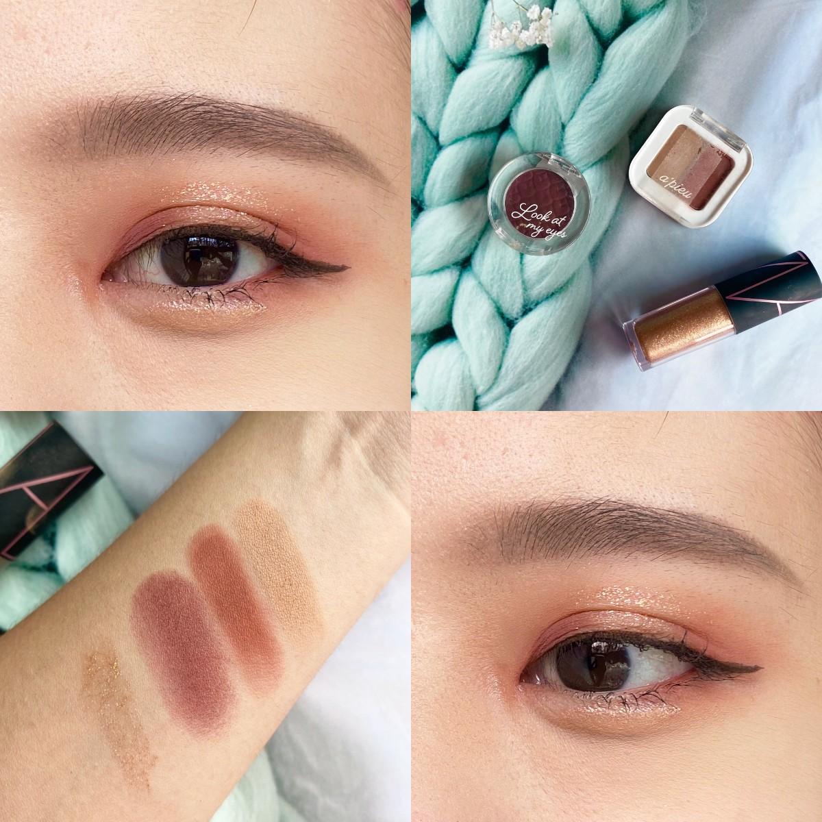 秋天到了,真的會讓人很想畫比較紅棕色的眼妝,今天要用的三個產品包含了#A'PIEU礦物雙色眼影 06、#EtudeHouse單色眼影 RD302 以及 MISSHA與LENA聯名系列NO.2 耀眼金光。