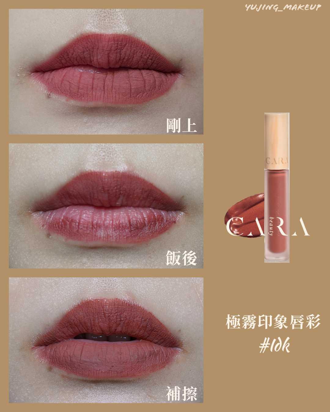 •舒適度:剛上有嚇到,感受很差,液體揮發後縮到變梅干唇,再補又會更縮乾,官方是建議要薄上,但霧面唇釉要描唇形很難一次到位吧!這樣消費者普遍接受度應該是會偏低,用了好幾次還是不喜歡上唇感受。