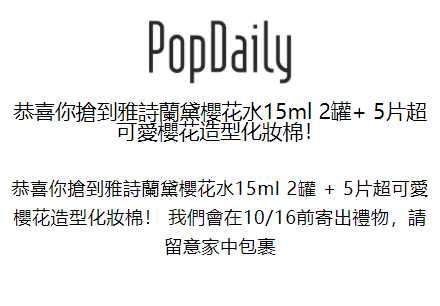好開心唷!~ 第一次參加就抽中啵啵黛莉的商品 超級期待他寄來家裡試用看看的:) 而且還是櫻花口味的耶! ^^ 希望我可以好好體驗,然後分享給大家
