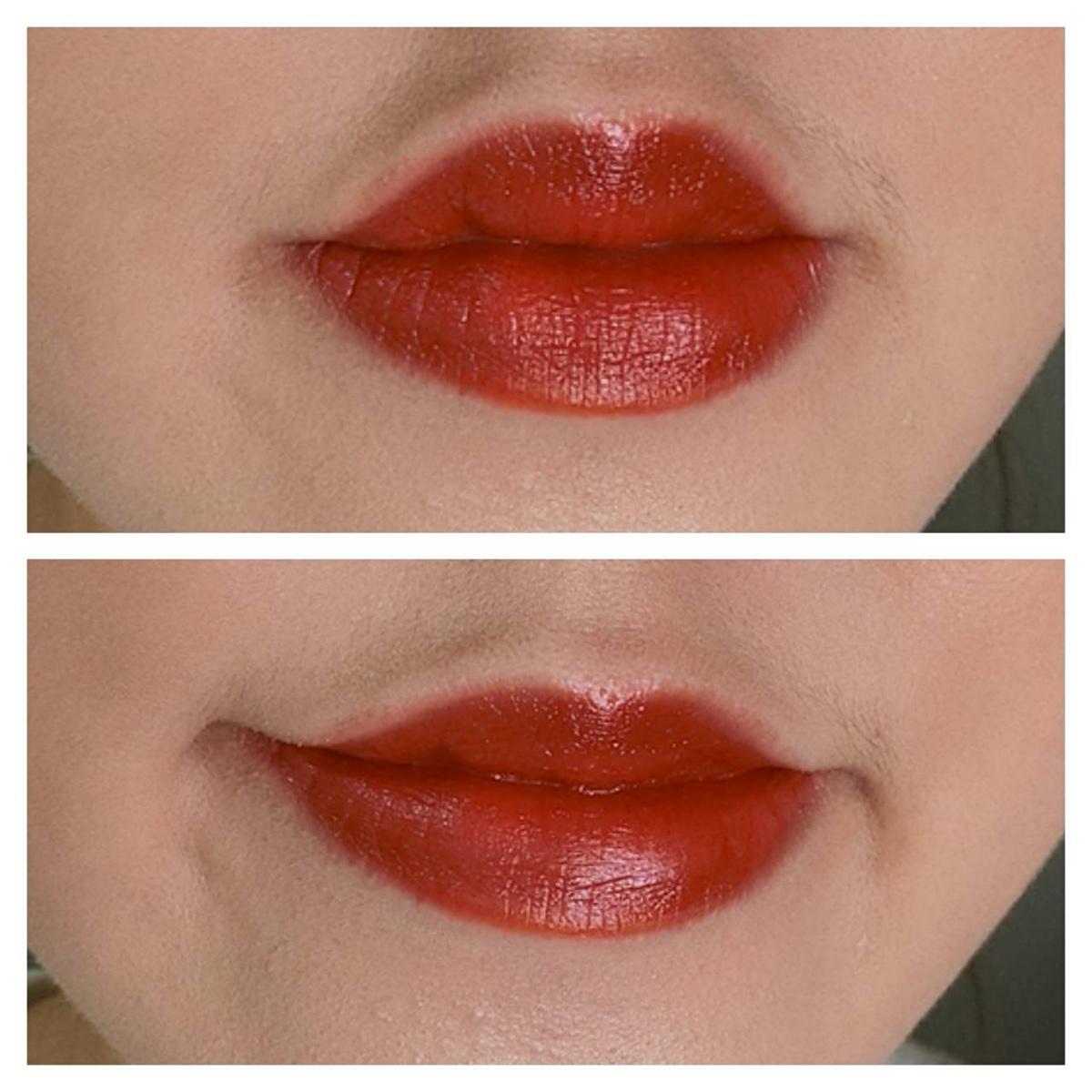 唇膏呈現的是霧面但又帶一點光澤感,