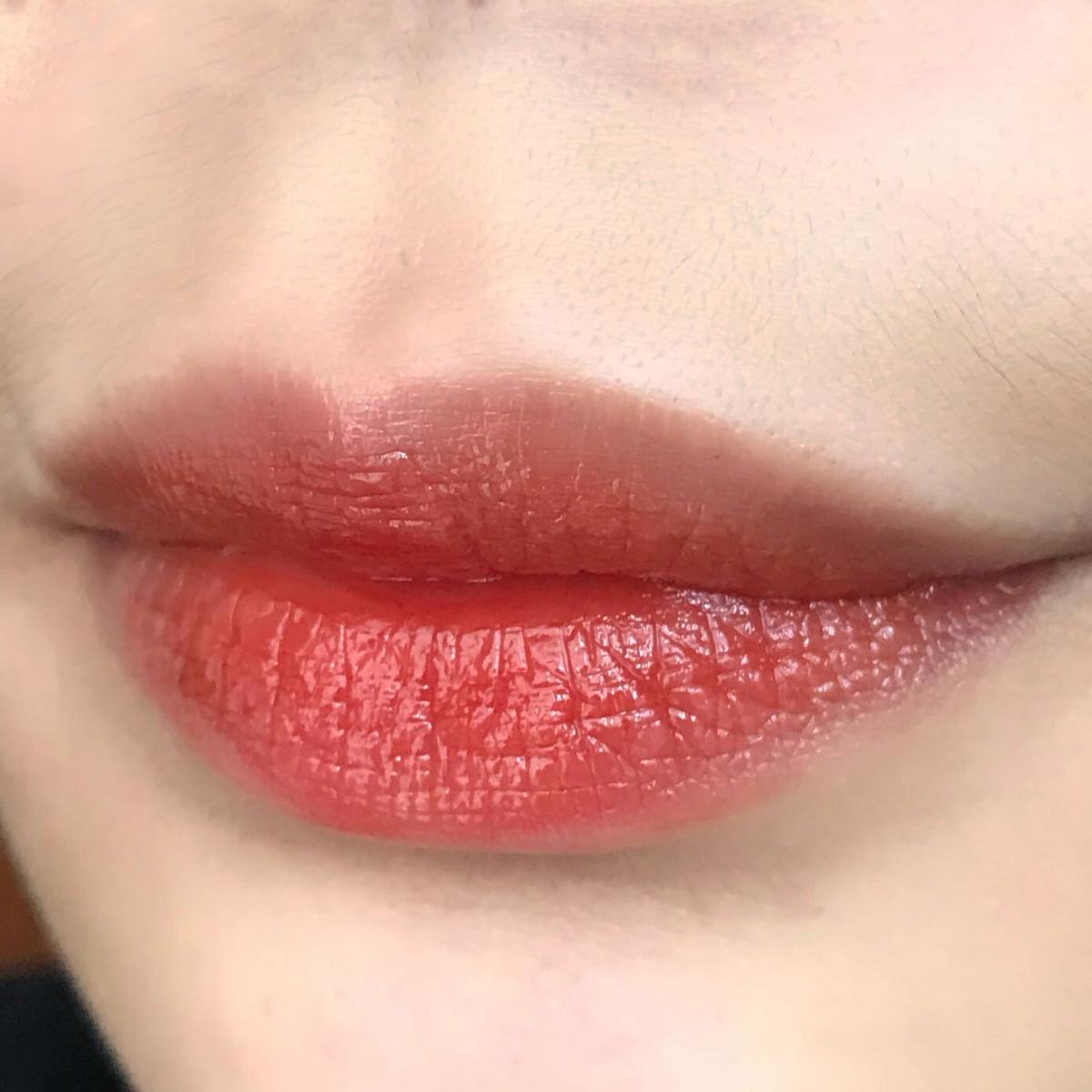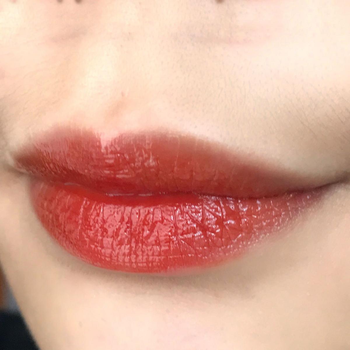 厚塗之後明顯比薄塗還要紅 水亮的感覺也比較明顯了 日常淡妝可以選這隻黃皮可收 黑皮不建議!