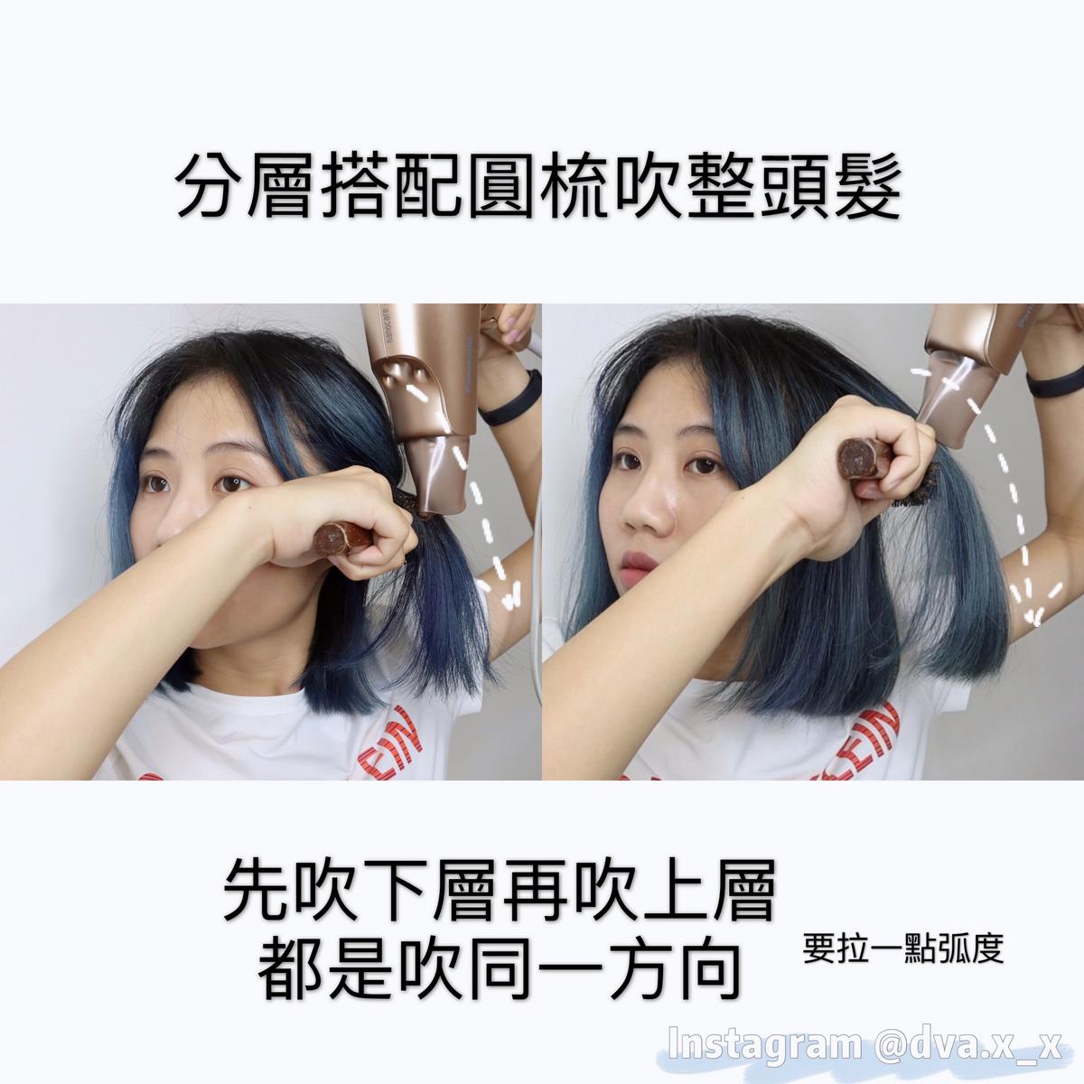 通常我都會把頭髮吹到8分乾時再使用圓梳