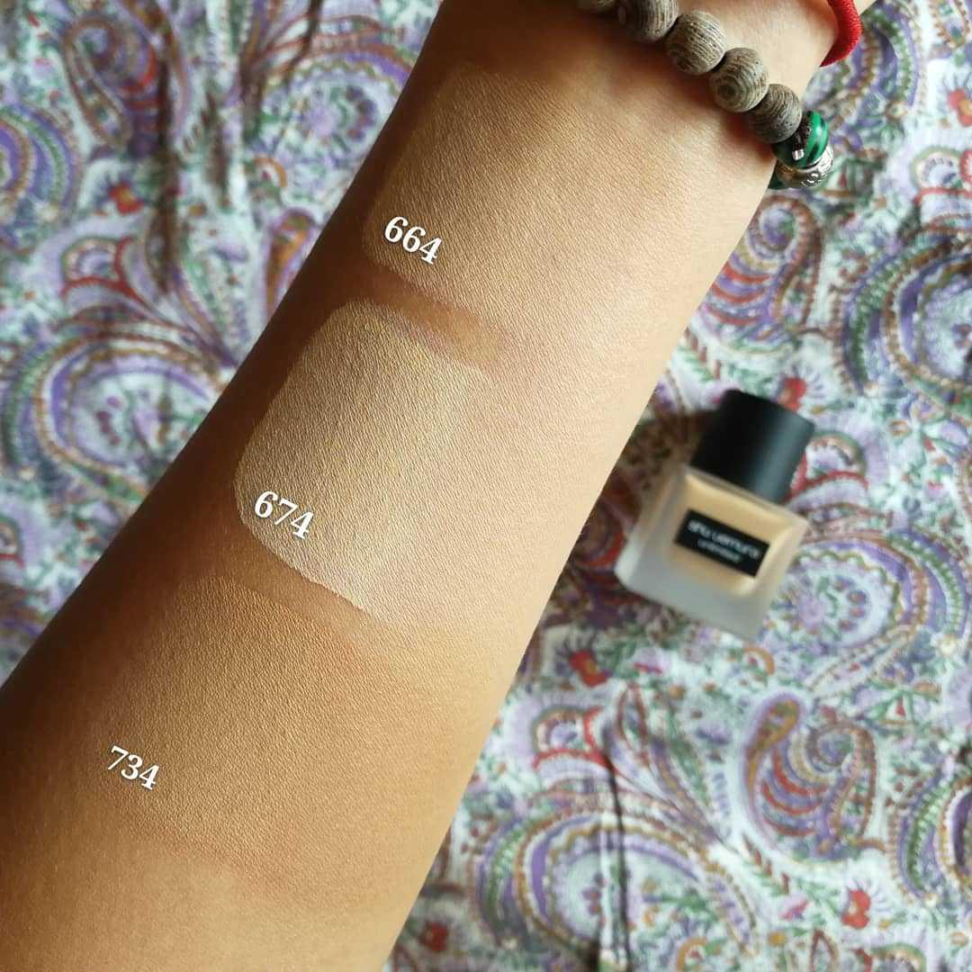 顏色 / 這次試色三個色號給大家參考~分別是664 / 674 / 734 (數字二是代表明度,所以數字越大越白皙喔~( ´▽`)/ 像我這樣的亞洲膚色也可以找到完美的底妝色號,亞洲底妝專家真的名不虛傳,看手臂試色就知道有多合😍