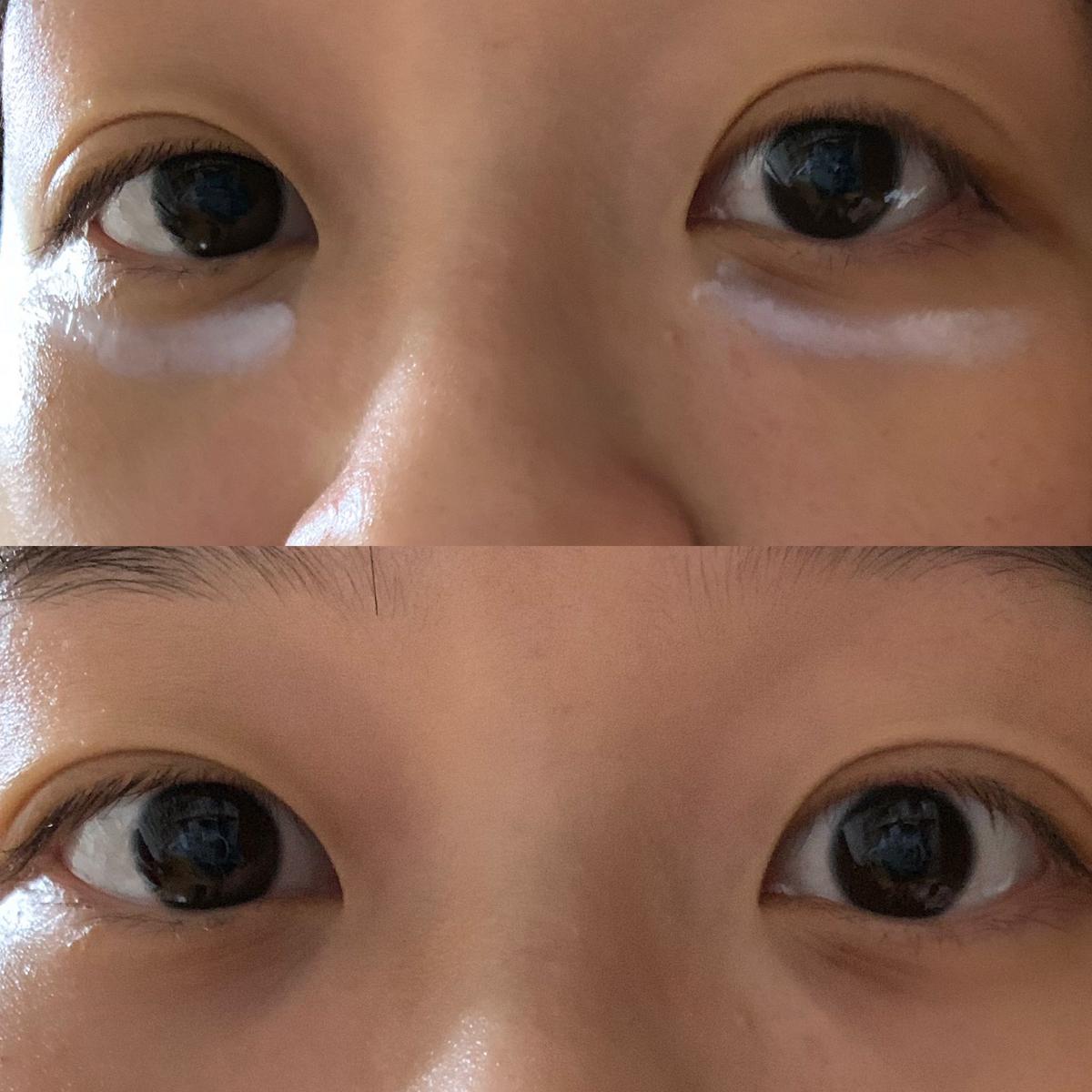雖然輕盈但滋潤度超夠!大家可以再看看圖3,上面那張可以看到我的眼周細紋真的很多又深,擦過之後有慢慢改善,希望之後大家看我的眼睛就以為我是高中生😝