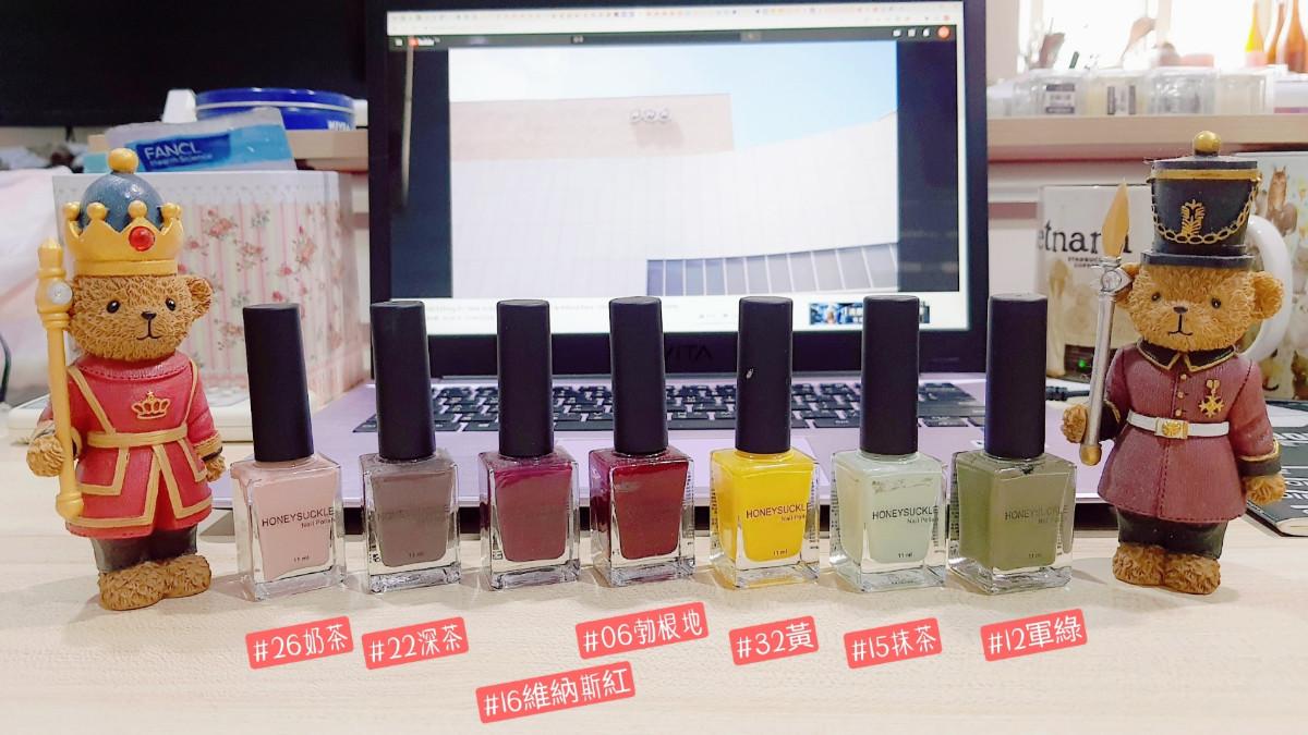 有網友私訊問我指甲油的顏色,今天先來分享honeysuckle這個牌子我蒐集的顏色