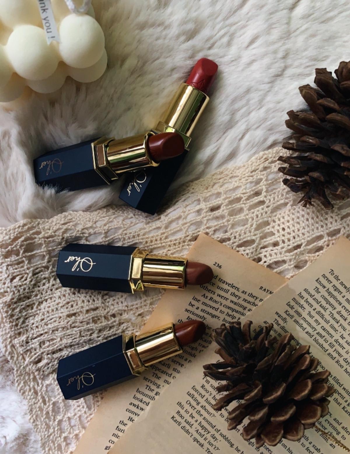 認識我的應該知道本人是個唇膏控,請別問我唇膏有幾隻(傷感情)這系列裡的「迷霧絲絨唇膏」必須推!質地雖然是絲絨感卻不會很乾,不會顯唇紋別擔心,裡面添加維他命E讓唇膏更多了一點油狀感,變得很好塗開,如果妳是個外貿協會的(like me)更會被包裝收服,靛藍色配上金邊的Logo很有質感,整支唇膏是六角形的設計,更像是聖誕樹最上面的那顆星星!