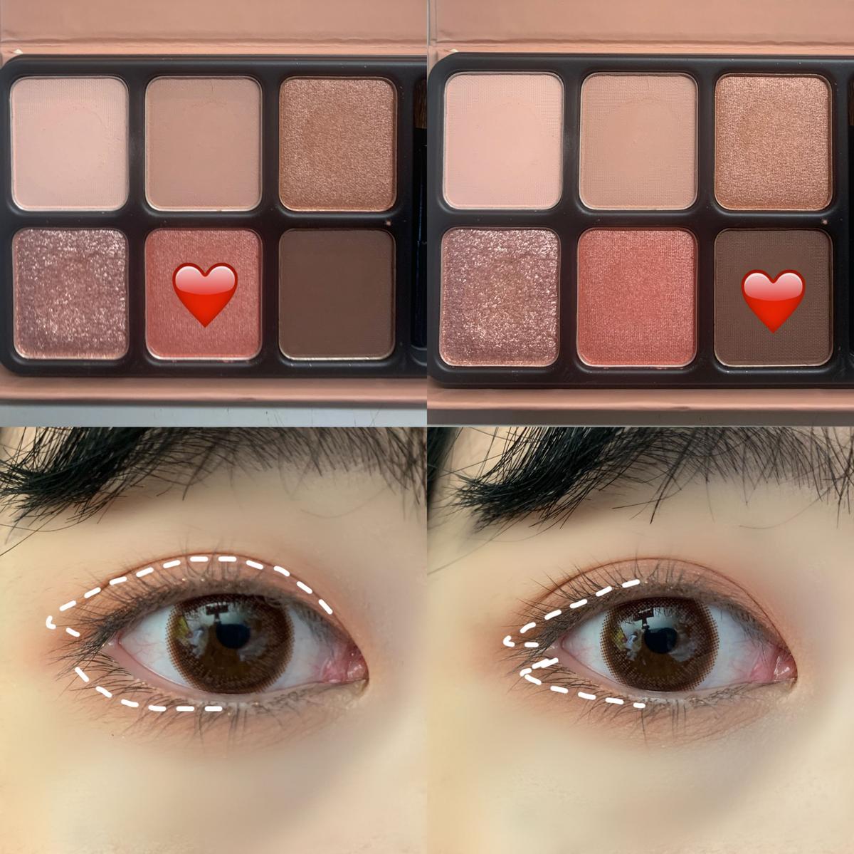 平常喜歡把亮粉加在眼睛中間、眼頭跟眼睛下面臥蠶處,畫眼妝也都是從淺色大範圍打底慢慢堆疊小範圍多深色,最後用最深的咖啡色加在睫毛根部跟眼尾打造眼線的效果✨