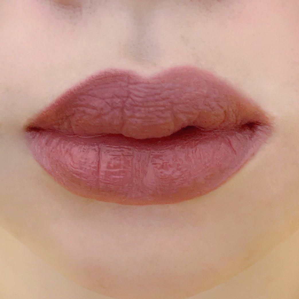 質地是介於霧面及滋潤唇蜜之間,平常我個人喜歡厚塗,當然也可以做咬唇、吻唇的感覺.