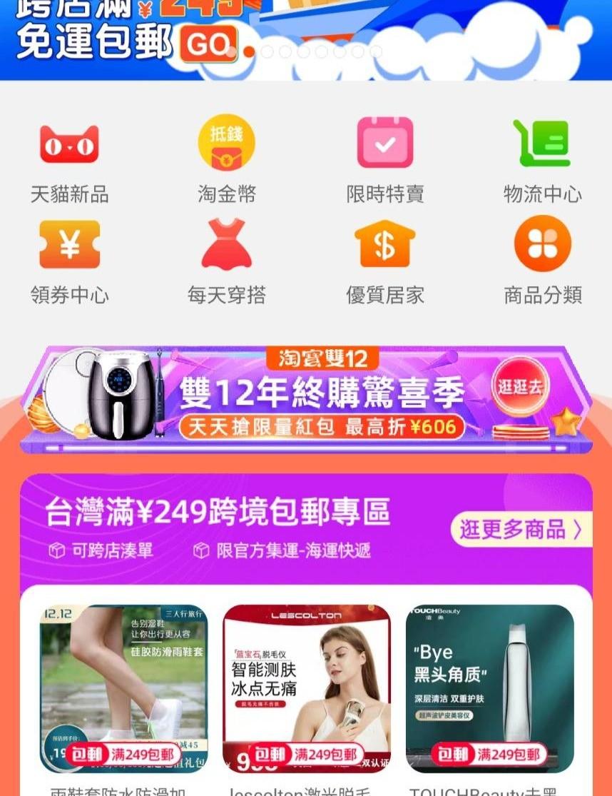 購物 -手機淘寶APP選擇跨境免運台灣包郵購買彩妝品好方便🧡